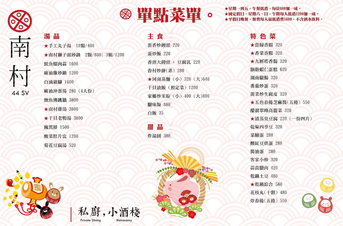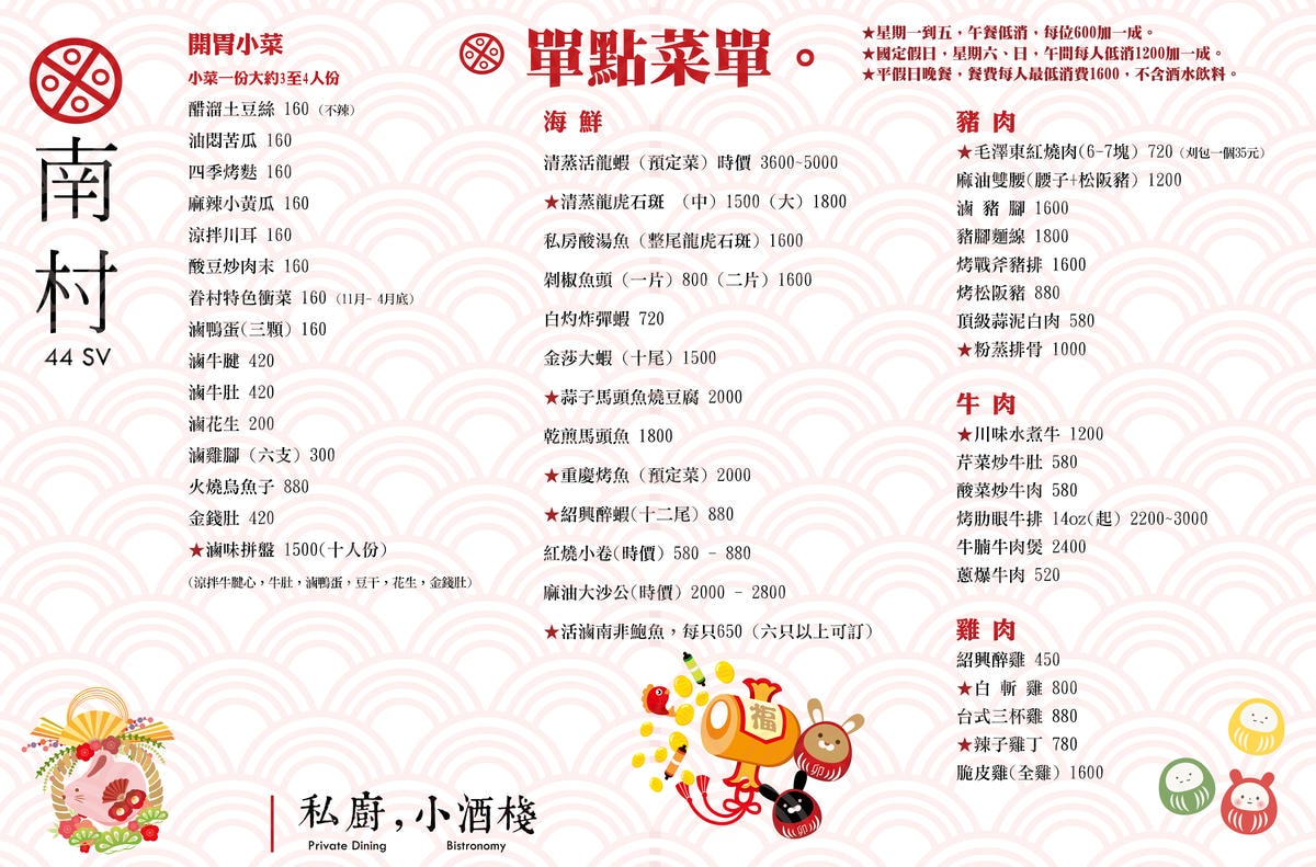 南村|私廚‧小酒棧 菜單