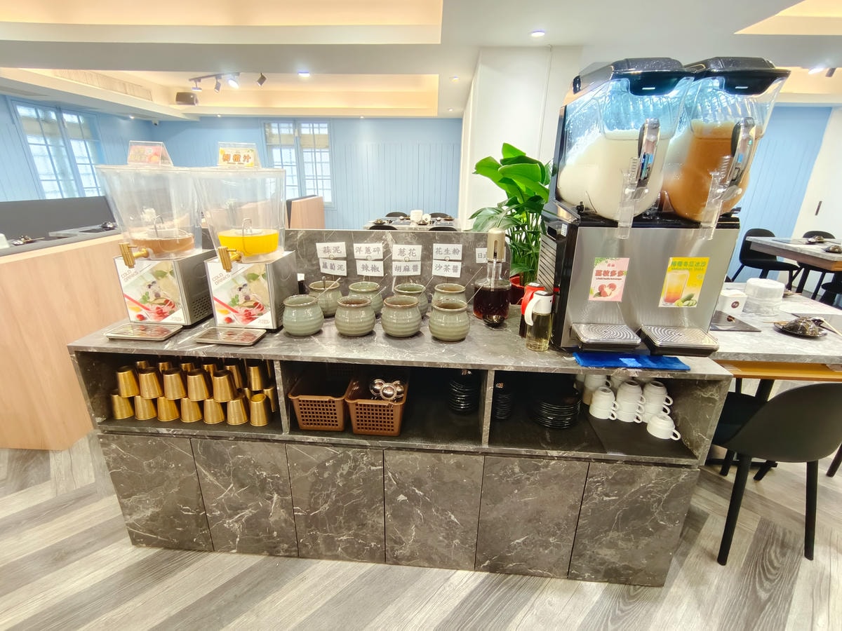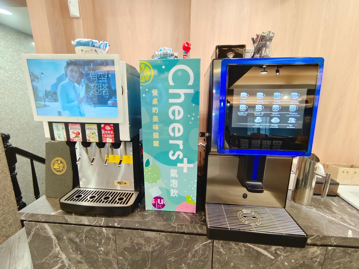 自助吧 , 有好多款的飲品 , 果汁 , 茶飲 , 有氣飲料 , 就連我愛的咖啡都有提供 , 飲料自助吧全都無限供應 , 客人自由拿取喝到飽 , 真的好貼心 , 這會想常來