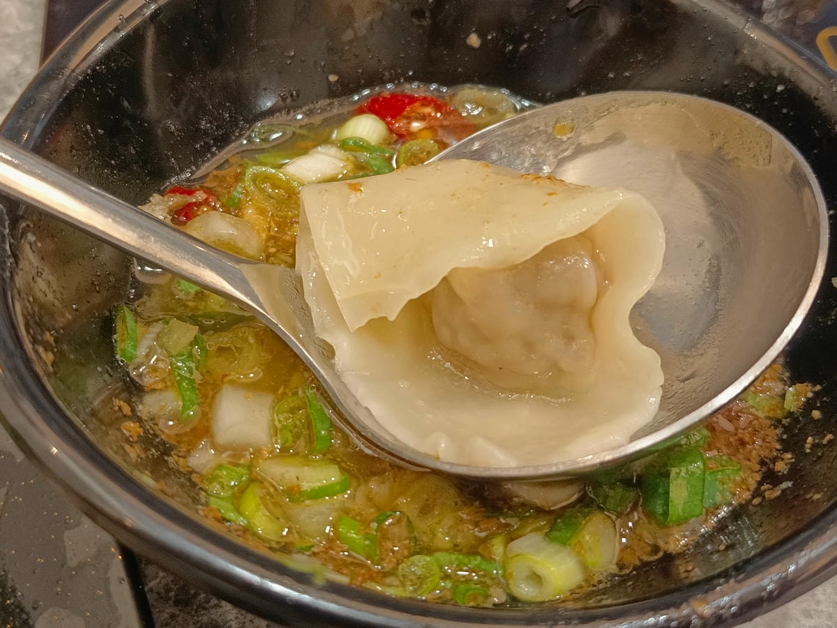 魚餃皮真材實料的內餡 , 吃起來口感很有嚼勁、很有彈性 , 久煮不易爛 , 越咬越香