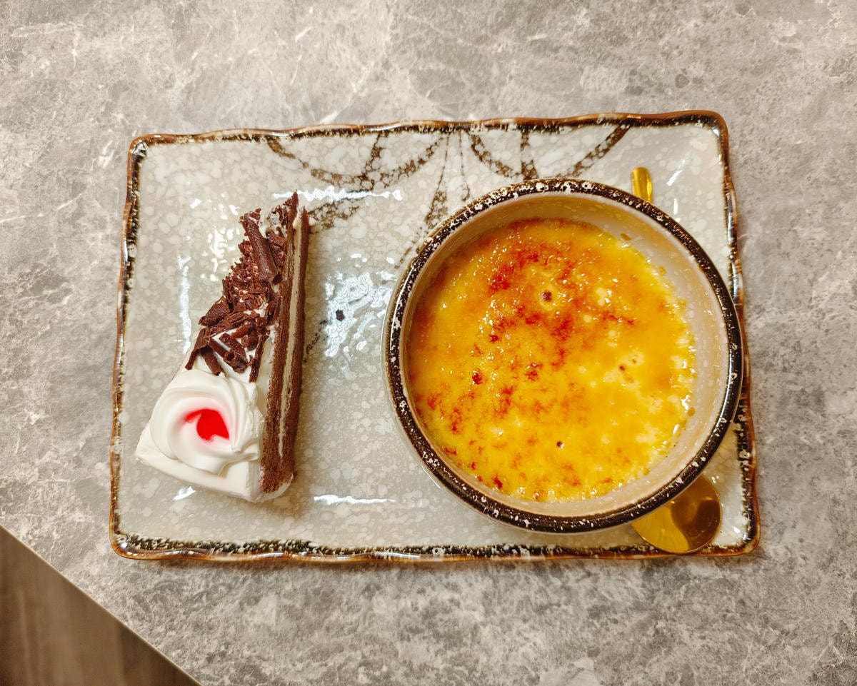 烤布蕾+小蛋糕 烤布蕾Q彈柔嫩、外表薄脆 , 口感間於布丁和蛋塔之間 , 真是好吃