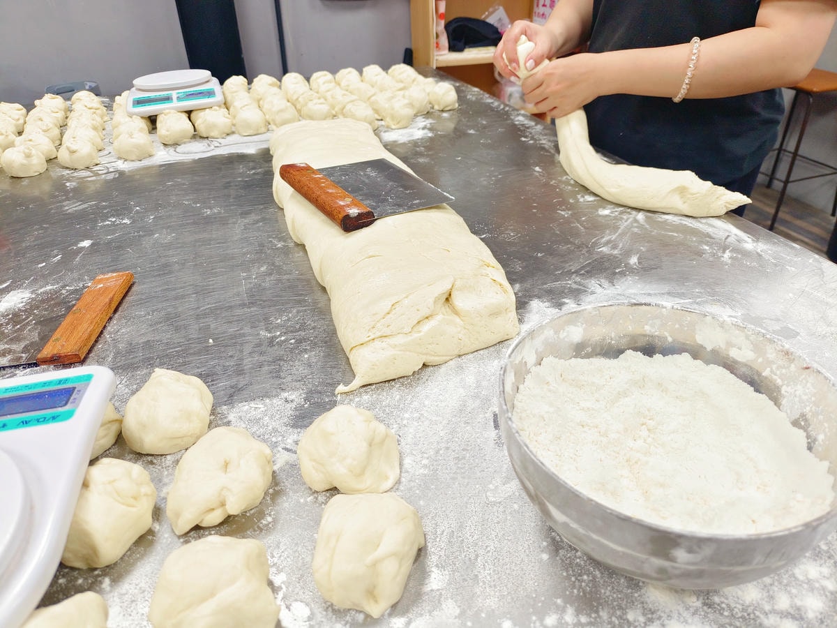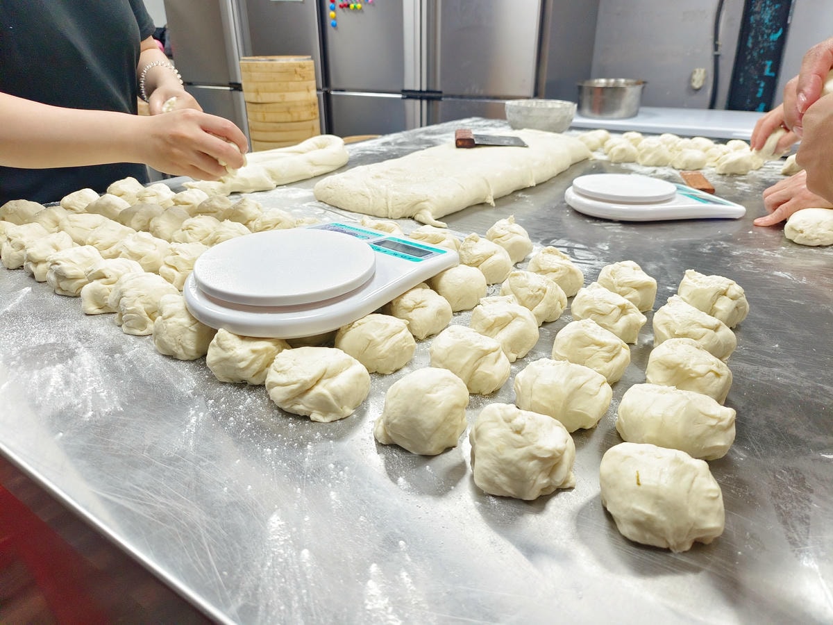 老上海包子 蘆洲店 包子製作過程和永春市場老上海包子是一樣的 , 品質不一樣不用讓人擔心 , 這也老上海獨門老麵發酵的特色,大大的麵團會先揉成長條狀,再捏製成一個個小麵團