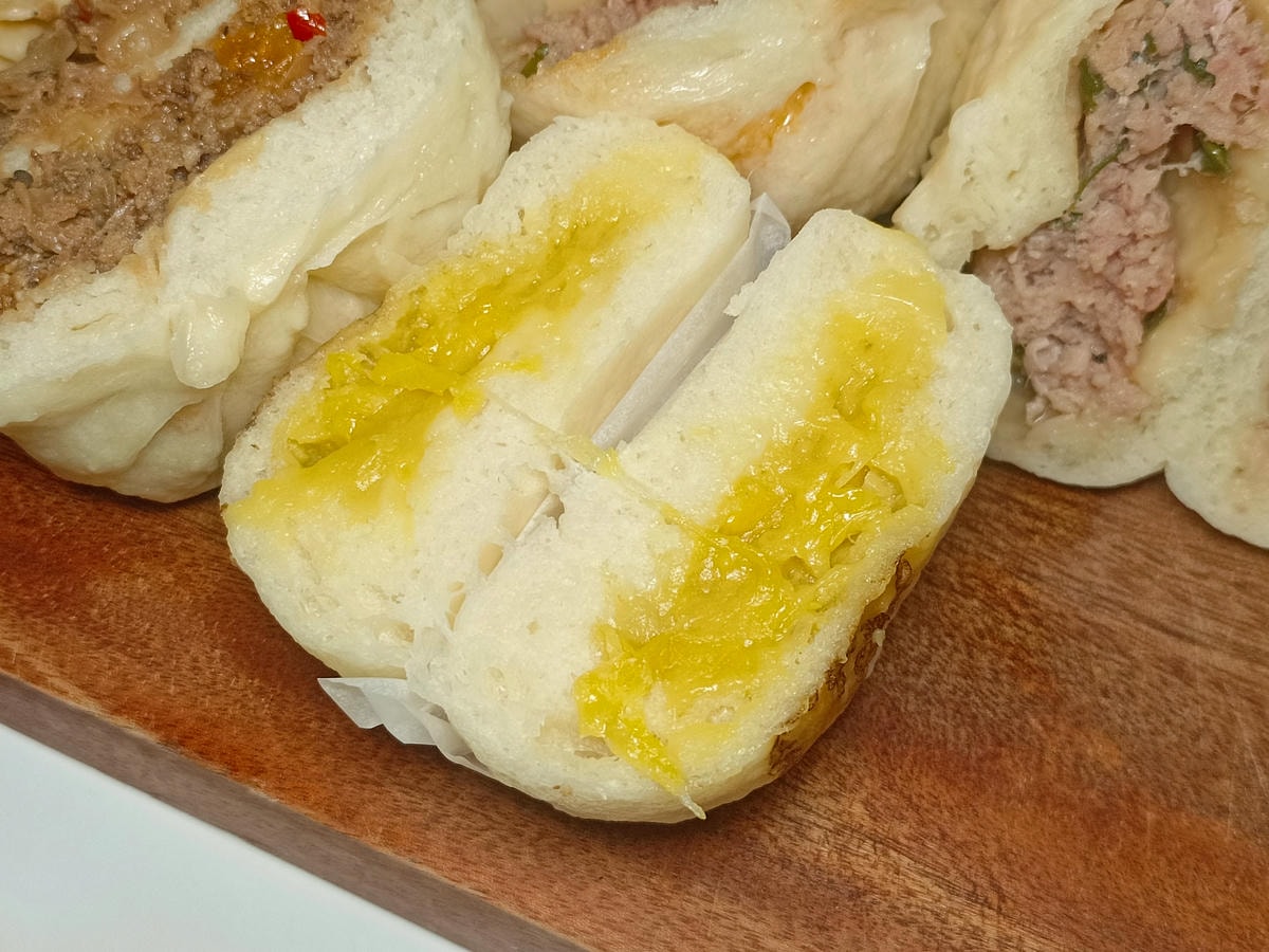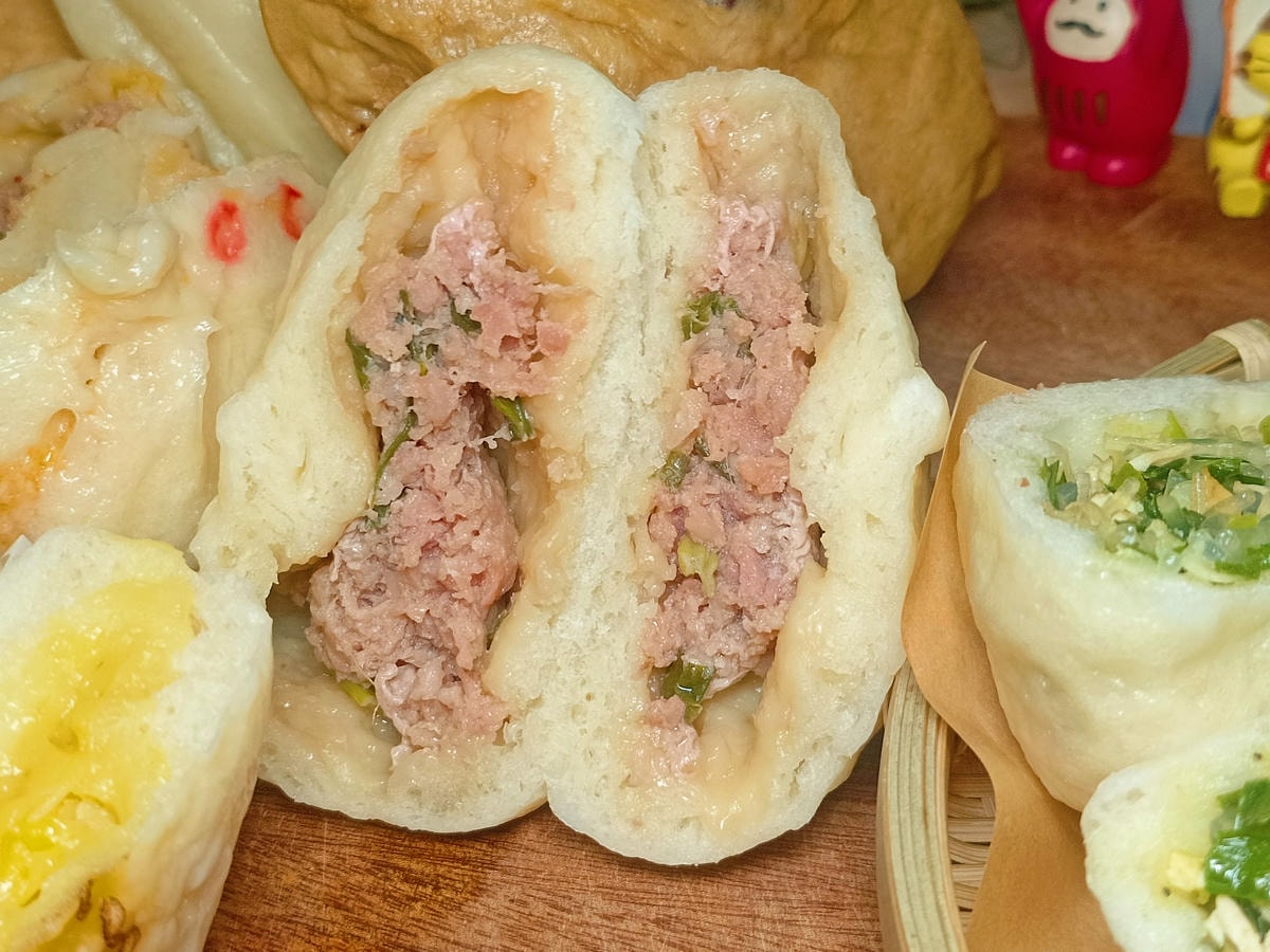 一口咬下 滿滿的肉餡中還有會湯汁溢出, 難怪大家會如此喜愛 , 這次小美除了買了經典 肉包 , 酸菜包 , 高麗菜包 , 韭菜包 , 麻辣肉包 , 豆沙包以外 , 還有超特別的和牛肉包 , 貓山王包-榴槤一口就能感受特別之處 , 加上料好實在份量足 , 多買放冷凍當正餐 , 午茶點心 , 宵夜都很適合 , 平常我是比較喜歡吃鹹的包子 , 但他們家的甜口味深得我意!每一種口味幾乎是沒得挑剔啊!