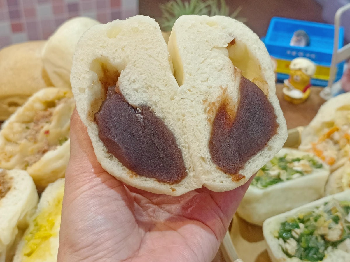 拿在手上就覺得豆沙包很有份量 , 內餡又多又滿 , 尺寸大小的吃起來剛剛好 , 早餐或是下午嘴饞來1顆也不會說太多 , 甜口味內餡都是老上海包子 自己煮的 , 都有調整減糖 , 所以吃起來都不會太甜喔~綿密微甜 , 香氣足搭配Q彈的麵皮一同咬下 , 真的好好吃 , 太讚了