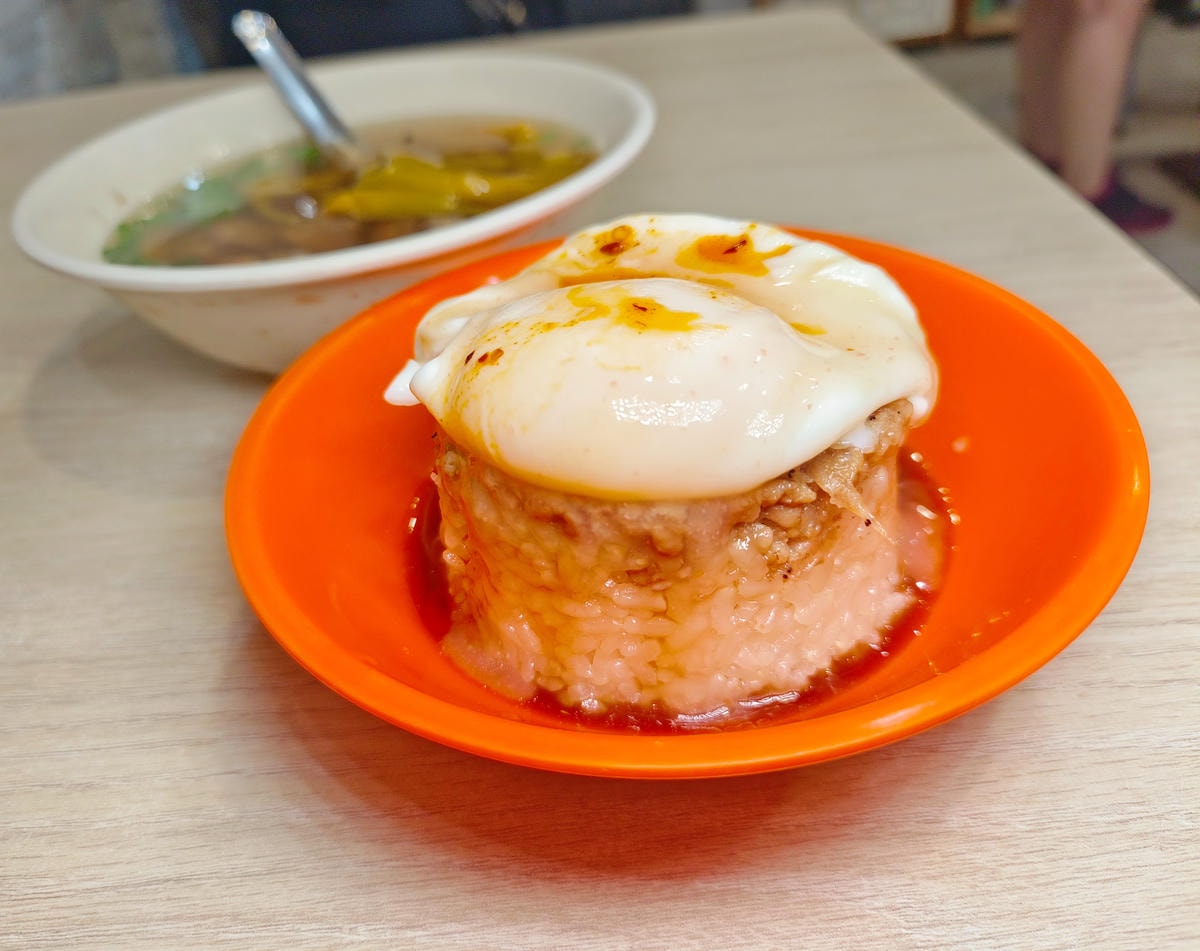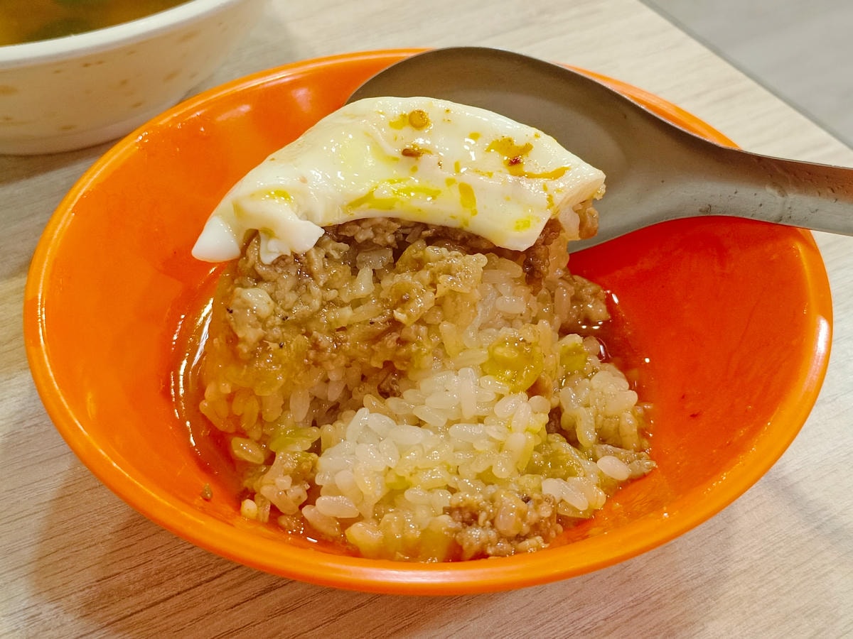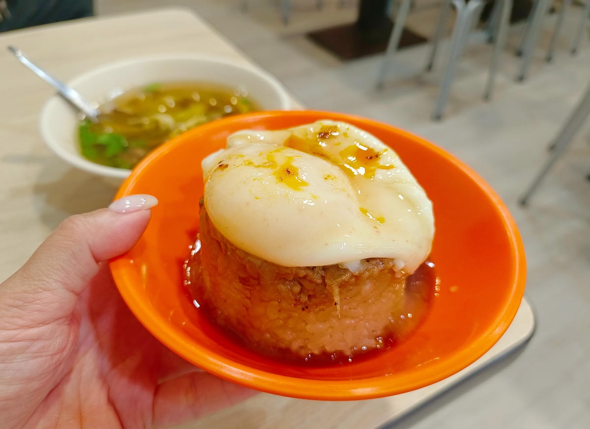 因為在IG上見到可愛的筒仔米糕 , 就馬上根上~這樣一套吃吃看 , 第一次吃到有加水煮蛋的米糕 , 加上黃澄澄的半熟蛋液 , 真的好誘人~米飯的口感較濕軟 , 上層的肉燥蠻香的 , 吃起來味道上比較偏向南部口味 , 淋上甜甜醬及辣椒醬真是對味