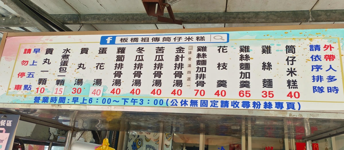 板橋美食飄香40多年的小吃店 , 在地人從小吃到大的銅板美食 , 『板橋祖傳筒仔米糕』怎麼我今天才發現 , 早上六點就開始營業到午餐後 , 對於我這睡晚晚的人來說 , 真的是不錯的好店 , 特別的網友推薦的老饕吃法 , 一定要點「筒仔米糕加上一顆水煮蛋」 , 湯頭鮮香金針與排骨交疊出迷人滋味 , 獨特的傳統美味 , 讓我將整碗越喝越喜歡 , 是怎麼都吃不膩的傳統小吃 快筆記吃看看吧