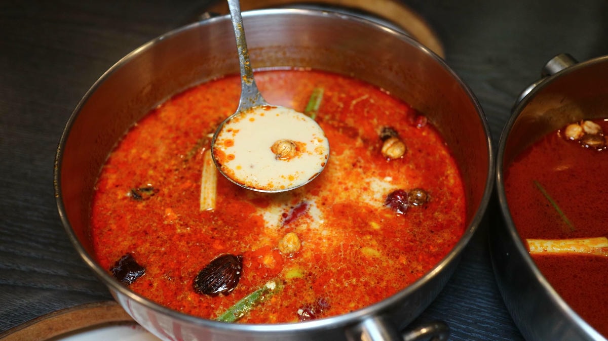 94咖哩孃萬大鍋物店的湯頭每鍋都是絕對必點的 , 他們的雙料各個是招牌 , 喝起來層次口感 , 讓人滿意奶香、咖哩 ,、麻辣 , 不湯底順口不鹹不膩 , 醇香直接喝也很可以哦