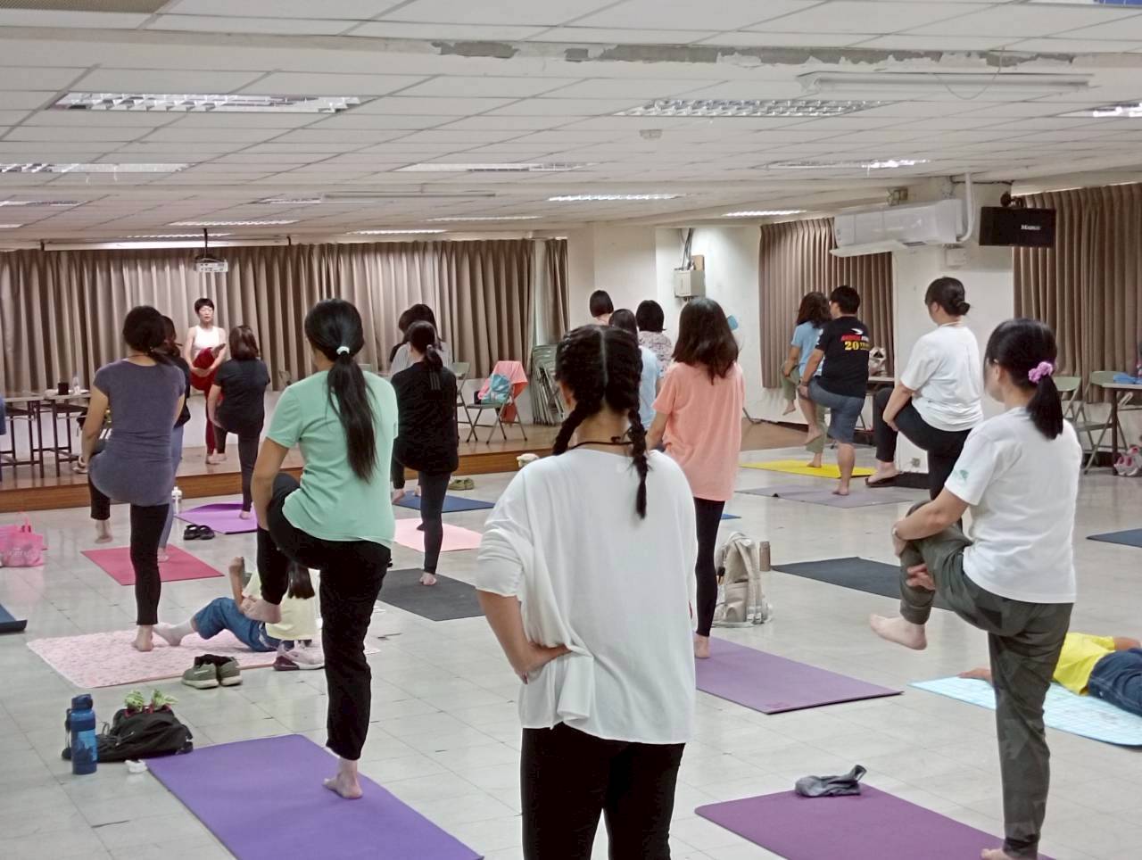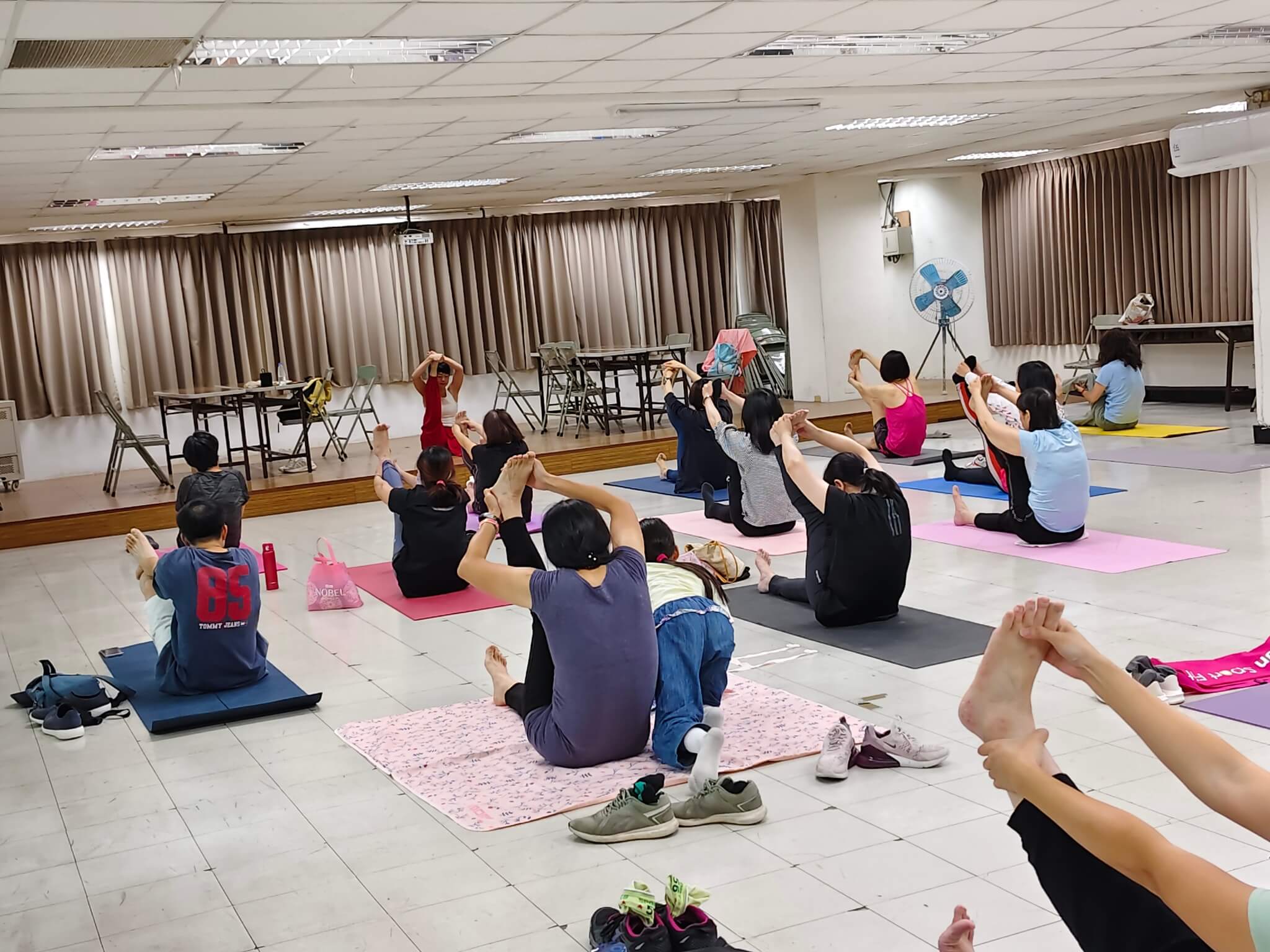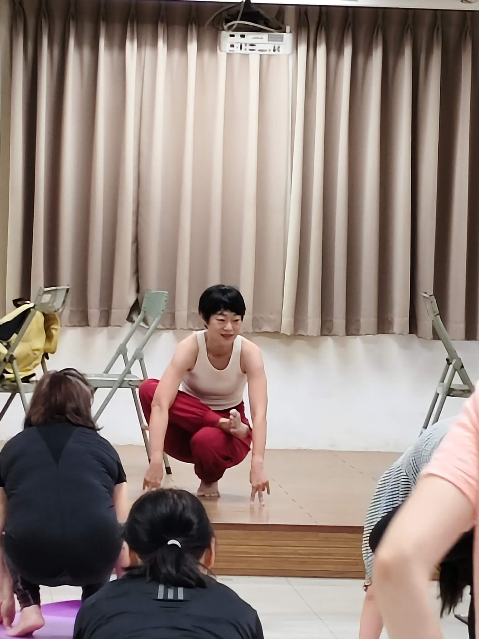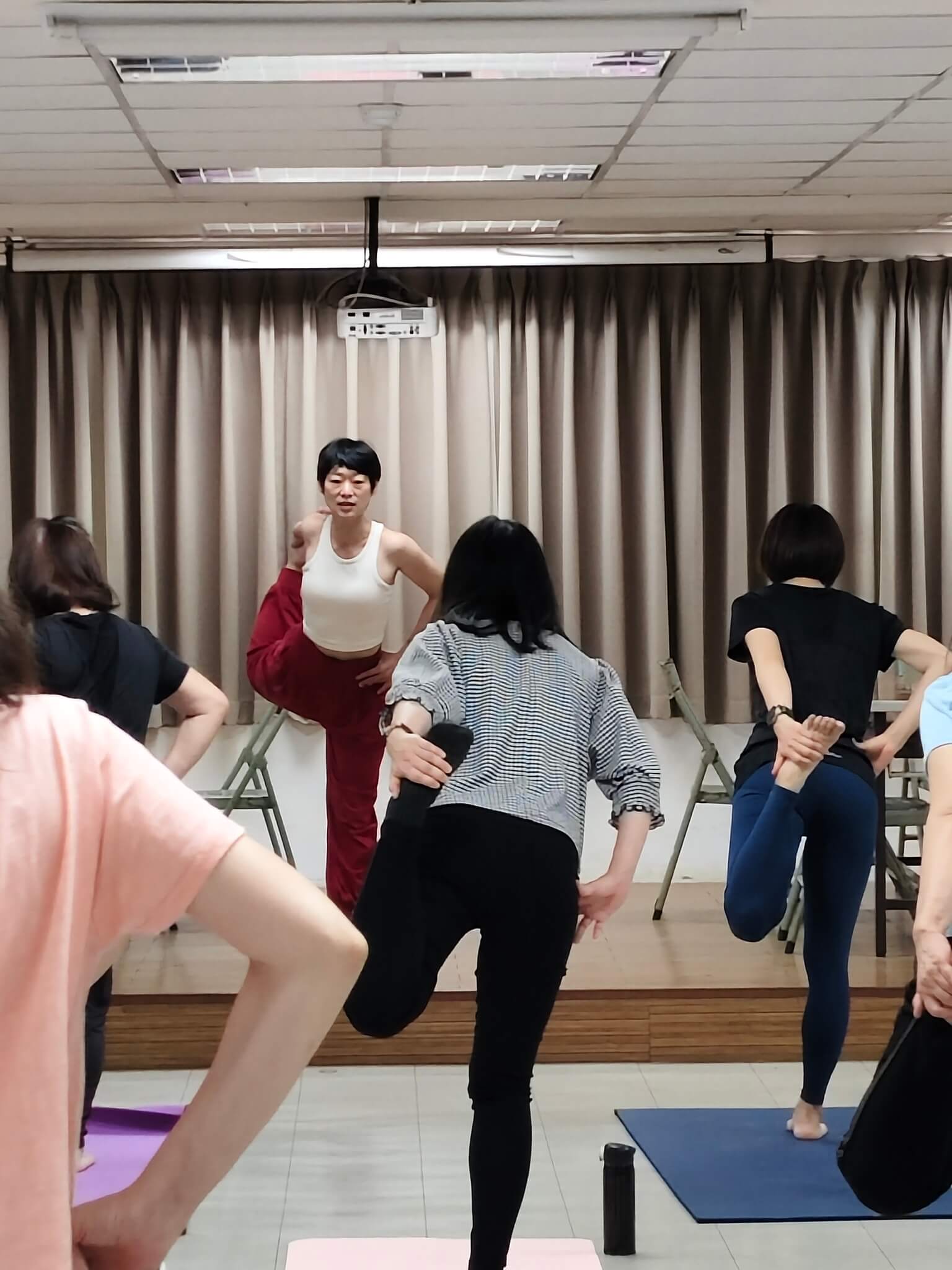一進到教室 , 同學也很有善都會互相打招呼 , 整個氣氛就讓人很放鬆 , 這堂快樂瑜珈課的靈魂人物 Sherry 林秀玉老師 , 她本人很有親和力 , 整堂課程中也是將瑜珈 魅力發揮的淋漓盡致