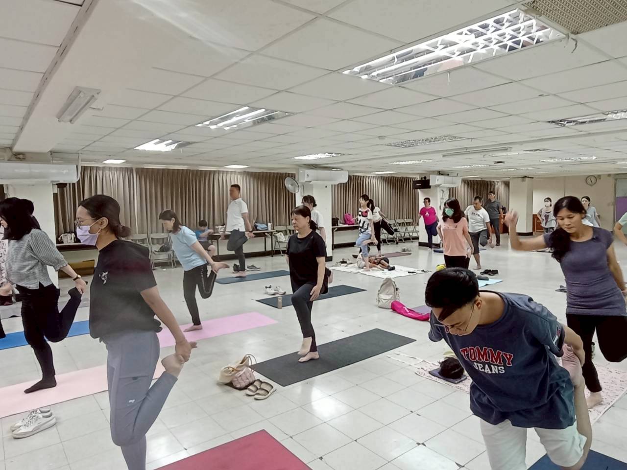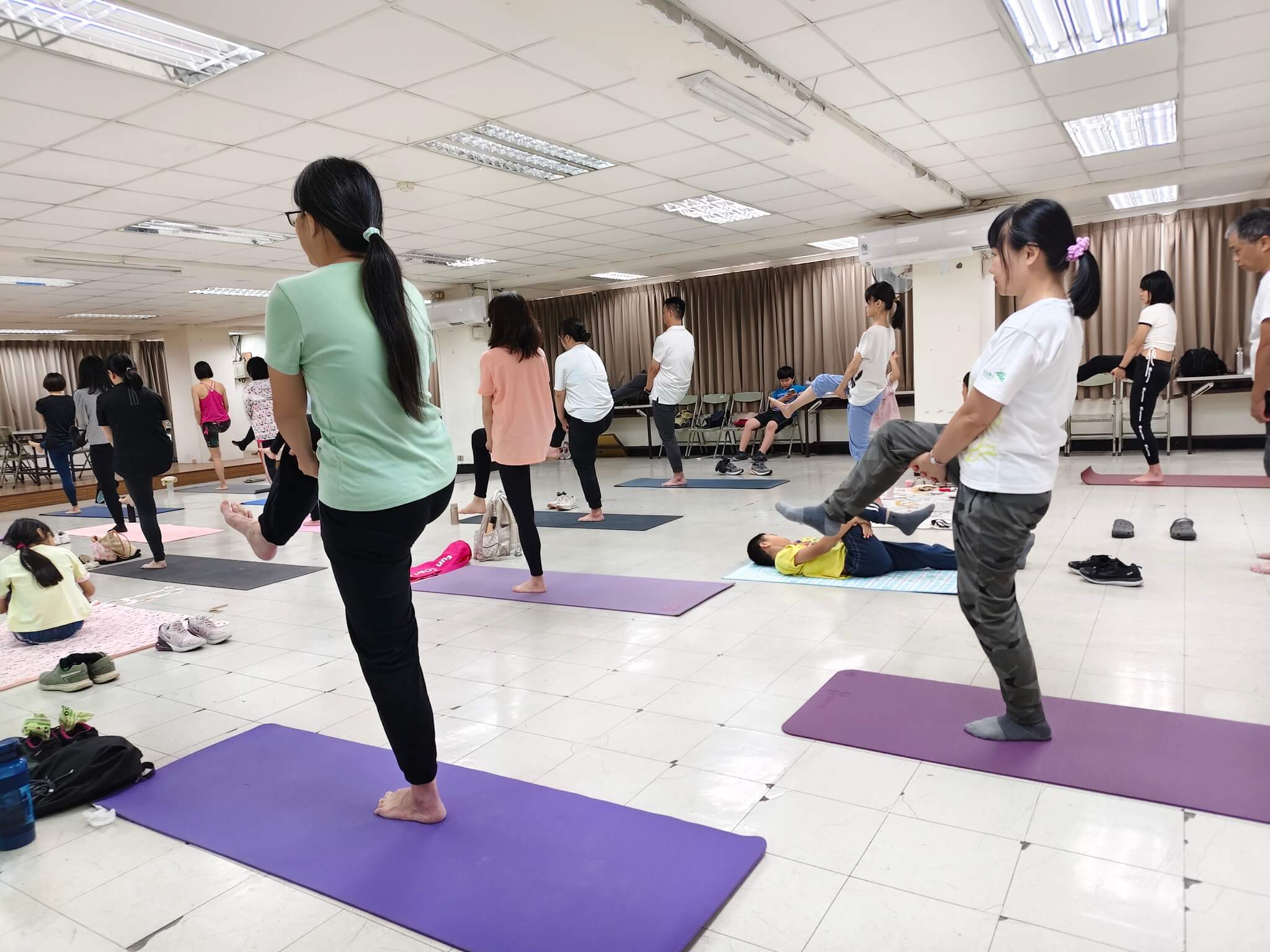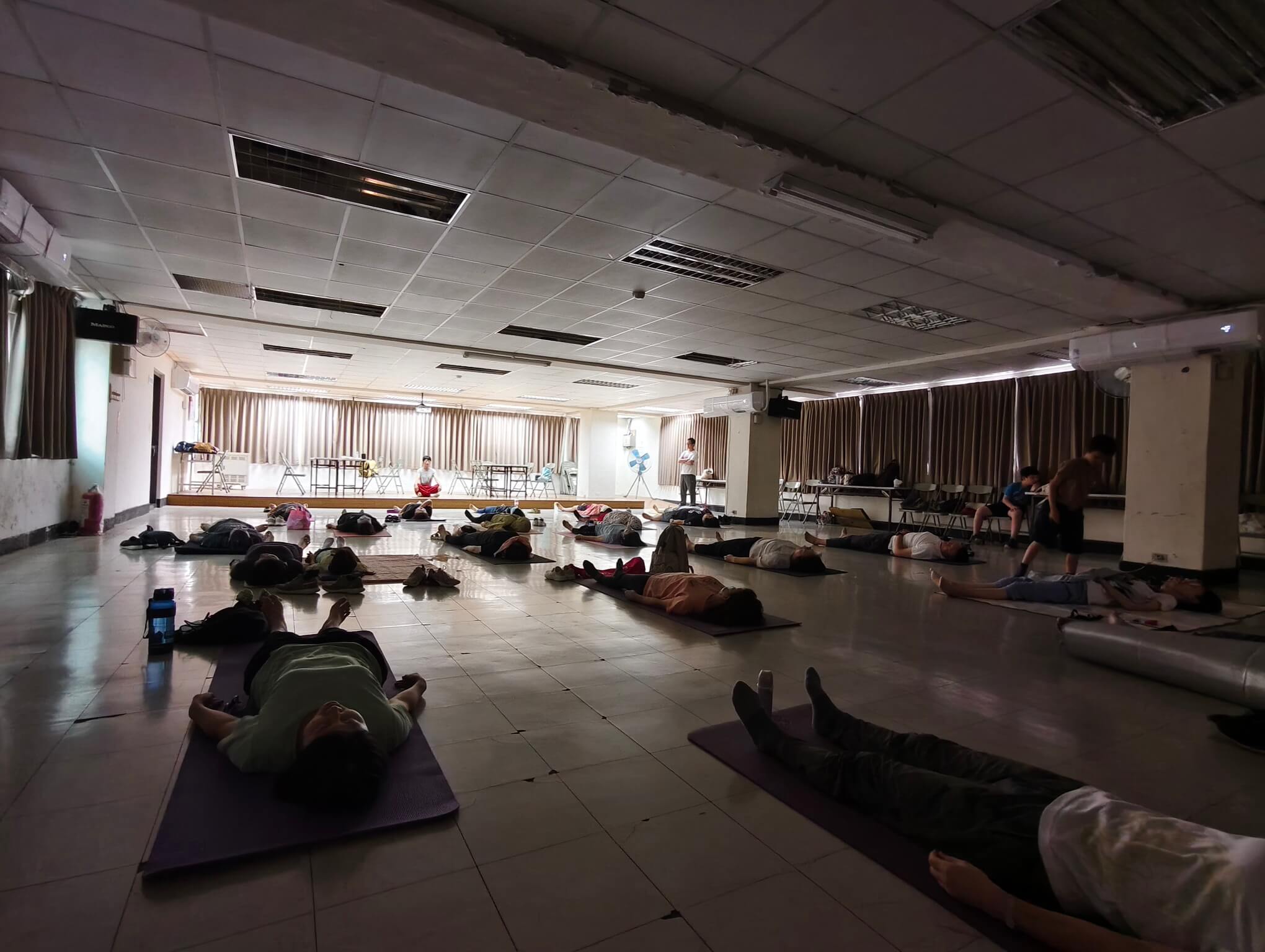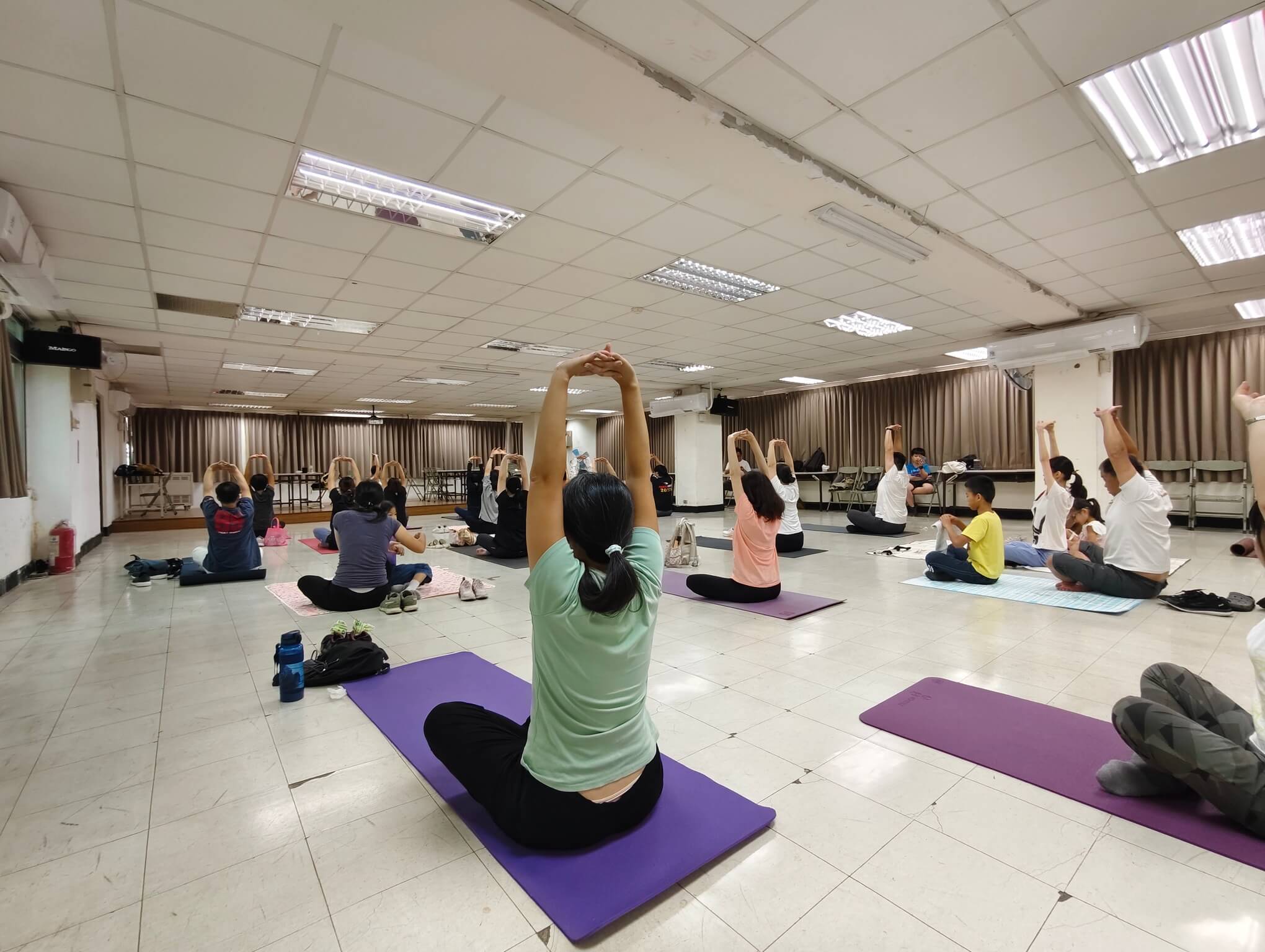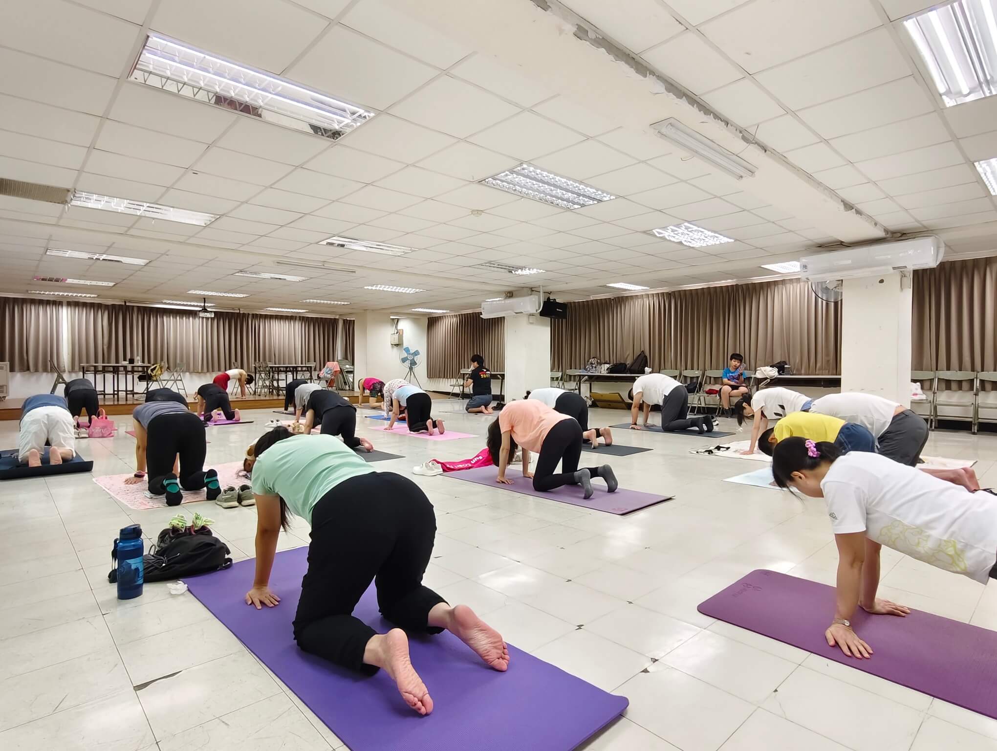 一進到教室 , 同學也很有善都會互相打招呼 , 整個氣氛就讓人很放鬆 , 這堂快樂瑜珈課的靈魂人物 Sherry 林秀玉老師 , 她本人很有親和力 , 整堂課程中也是將瑜珈 魅力發揮的淋漓盡致