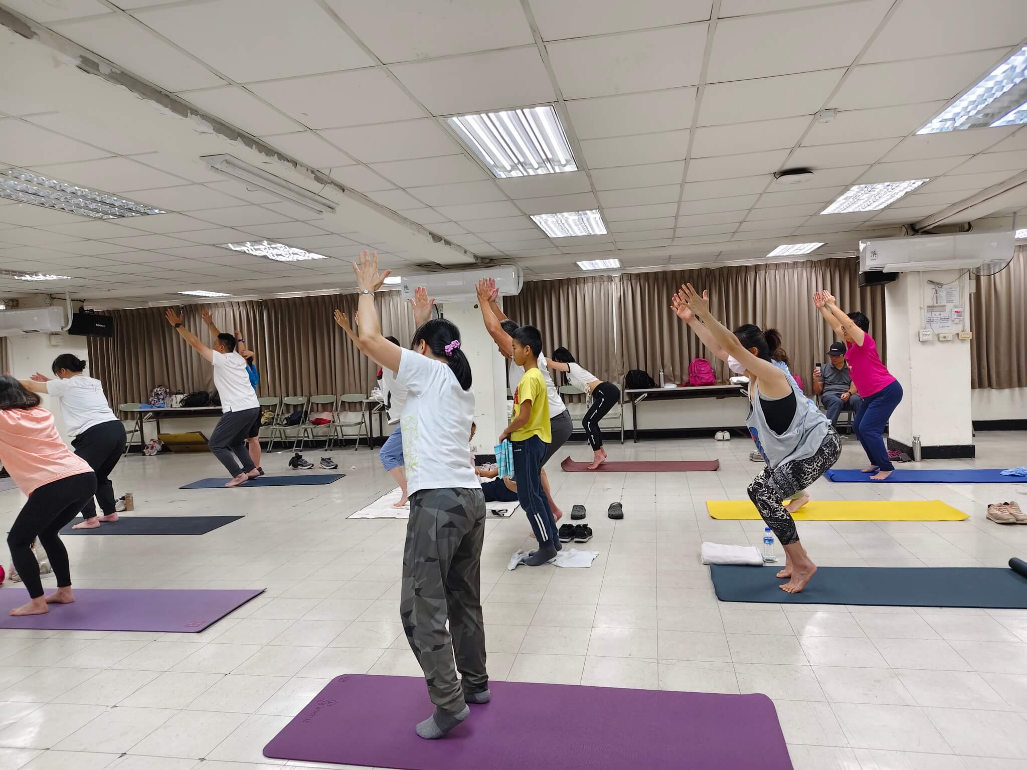 今天來上的課是快樂瑜珈 今天的授課講師是 Sherry 林秀玉 老師 , 林老師擁有超過五年瑜珈與樂齡課程教學經驗 , 擅長將舒緩瑜珈結合情緒調節與身體覺察。她的課程在健身工廠、各大運動中心與企業深受好評,是許多親子與長者課程的指定講師