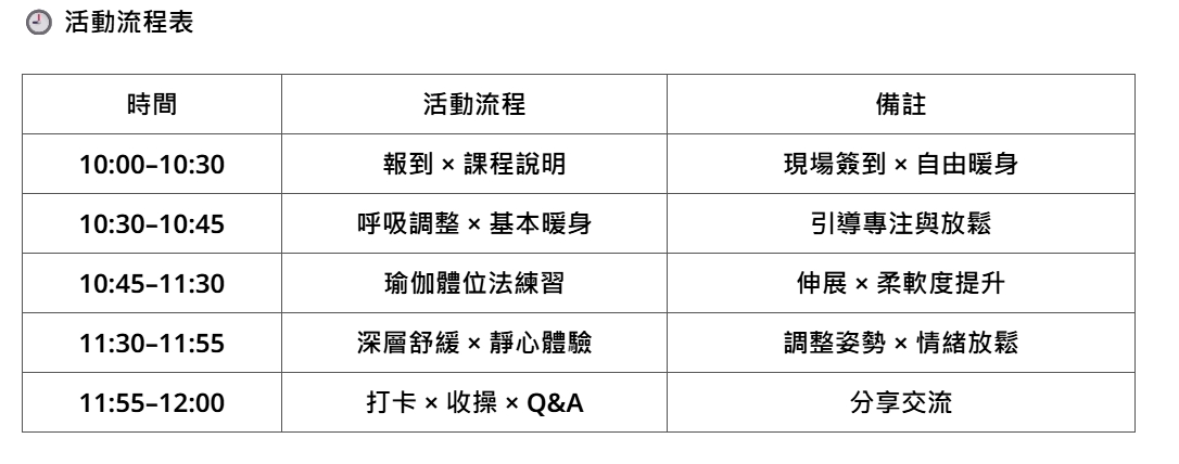 報名前小美特別看了一下 課程需準備的東西 , 這場臺北市知能系列活動 推出的快樂瑜珈 真的太棒了 , 學員只要穿上運動服、帶上瑜珈墊, 就可以來體驗了 , 運動可以簡單又不花大錢 , 零負擔動起來