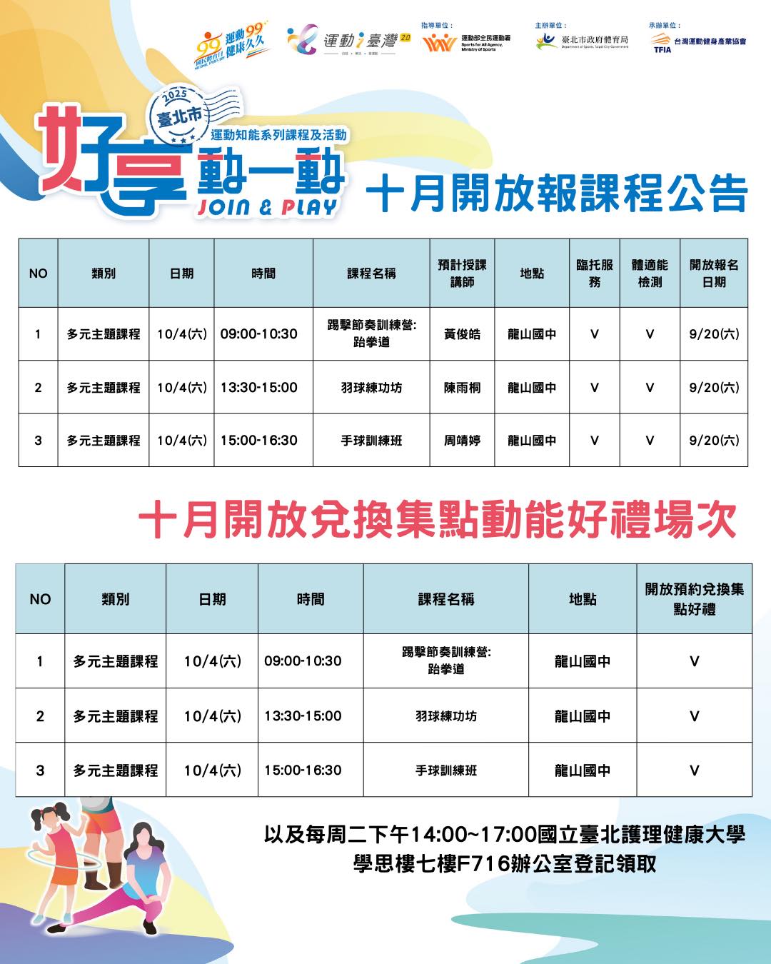 行政院在2025年成立了運動部 , 專門規劃全國的運動政策 , 還在底下設立了全民運動 , 哇 , 這代表國家也重視國人的健康起來了 , 讓小美感覺非常開心 , 就在9月13日臺北市體育局主辦 2025國民體育日運動嘉年華活動 , 主題是「JOIN & PLAY」 可以感覺是一場有趣活動 , 這次特別和TFIA台灣運動健身產業協會一起合作 , 臺北市運動知能系列課程特別推出多堂免費運動的體驗課程 , 小美馬上報名了文山區 興隆區民活動中心「快樂瑜珈」就跟著小美一起來看看吧
