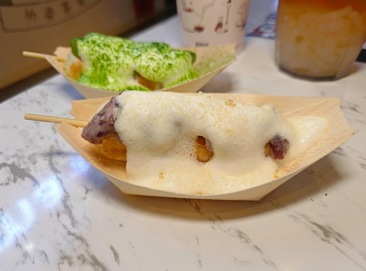 日式經典的烤糰子以及台灣香濃的紅豆 淋上濃郁的奶霜 , 有嚼勁有層次完全擄獲人心!口感不會過於甜膩 , 吃起來不膩口