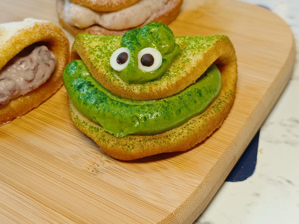 京都抹茶的甜度怎麼可以控制得如此剛好 , 軟中帶Q的蛋糕燒餅皮 , 搭配濃郁的抹茶 , 每一口都可以吃到~濃郁的抹茶香氣 , 唇齒留香