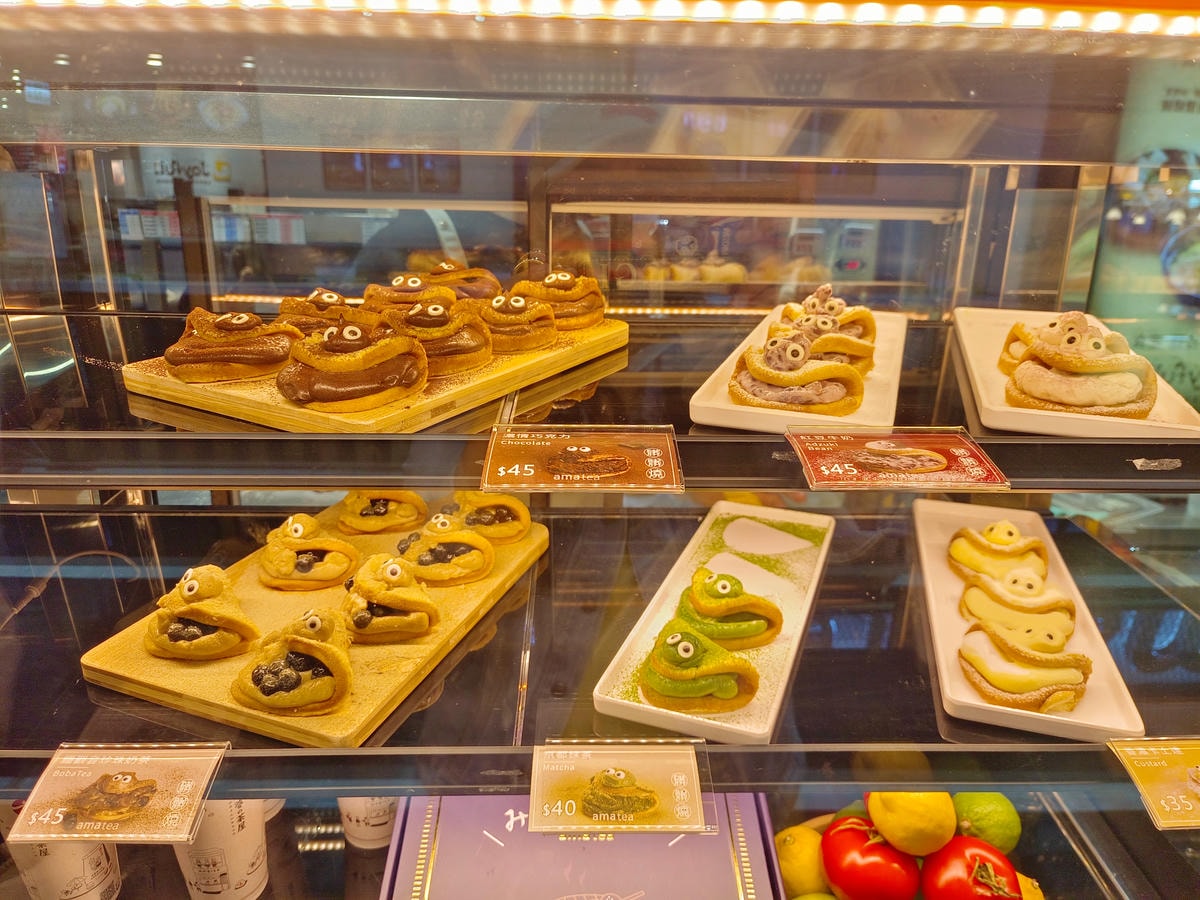 窗裡陳列琳瑯滿目的點心 , 馬上被近期新登場的「髒髒燒& 髒髒糰子」給吸引住 , 浮誇系爆漿秒殺甜點控手機/相機記憶體 , 髒髒燒本人可愛到炸爆 , 不買個一二個怎麼行啦 , 口味蠻多的!而且外帶兩個以上會用精緻盒子裝