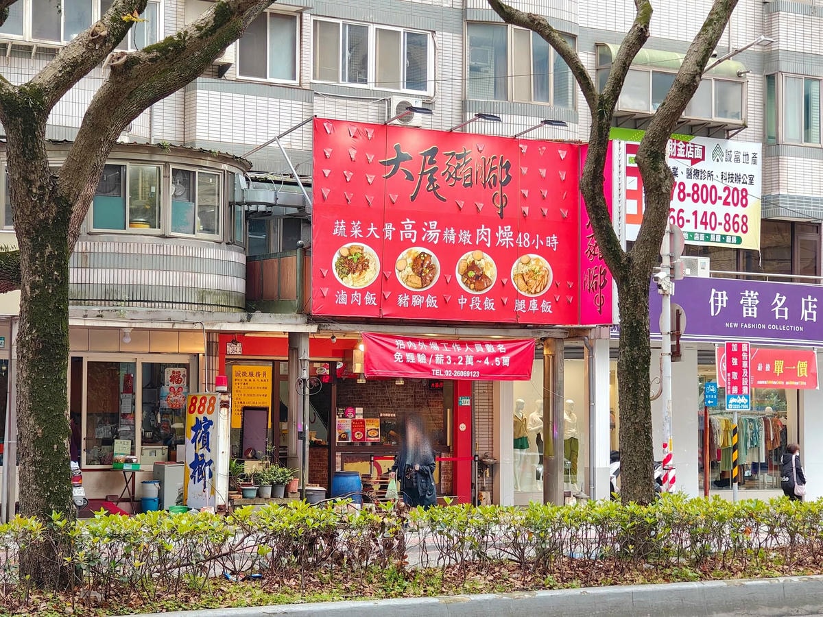 林口豬腳飯推薦「大尾豬腳」網路評價很高 , 更是林口在地人最常買的便當店 , 網路推薦必吃的腿庫飯是招牌 , 腿庫燉得夠軟爛 , 入口膠質滿滿而且不油不膩 , 大尾豬腳菜單提供腿庫飯、腳啼飯、松板肉飯、中段飯、中膝飯、滷肉飯和各式小菜 , 還有黃金蔬菜湯、辣蘿蔔、炒酸菜、嫩薑片都是無限供應 , 營業時間從早上就開始 , 每次經過都排隊 , 建議不要用餐時間來 , 晚來吃不到的中段豬腳飯!大尾豬腳林口好吃便當推薦給你們
