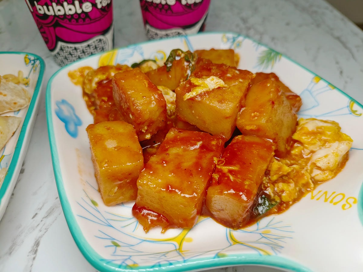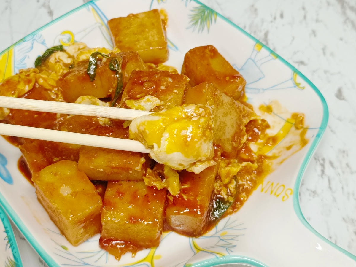 煎好的蘿蔔糕很香 , 外皮呈現微酥脆 , 口感綿密 , 醬鹹度剛剛好 , 會愈吃愈涮嘴