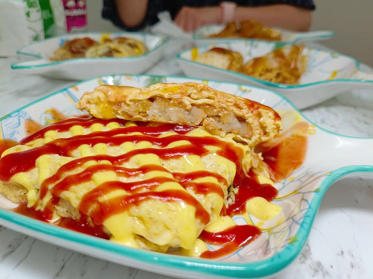 整片蛋捲看起來超柔嫩、起司又呼之欲出的樣子真的好邪惡~不會過鹹、包裹的薯餅吸收到蛋皮的香氣以及起司的美味 , 一上桌香氣馬上撲鼻而來!蛋控必收下