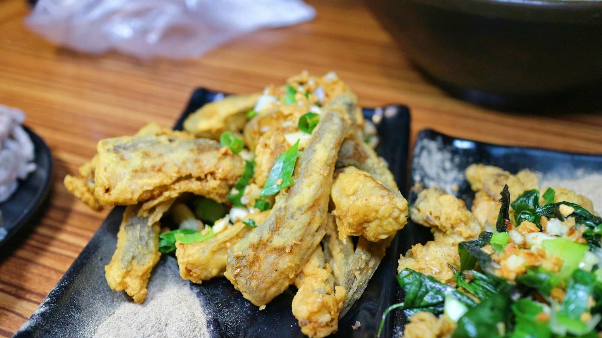 酥炸的程度剛剛好 , 讓外皮酥脆 , 肉質維持鮮嫩度 , 沾點胡椒鹽後 , 香甜鹹的口味 , 非常討我歡心 , 一次吃掉好幾片