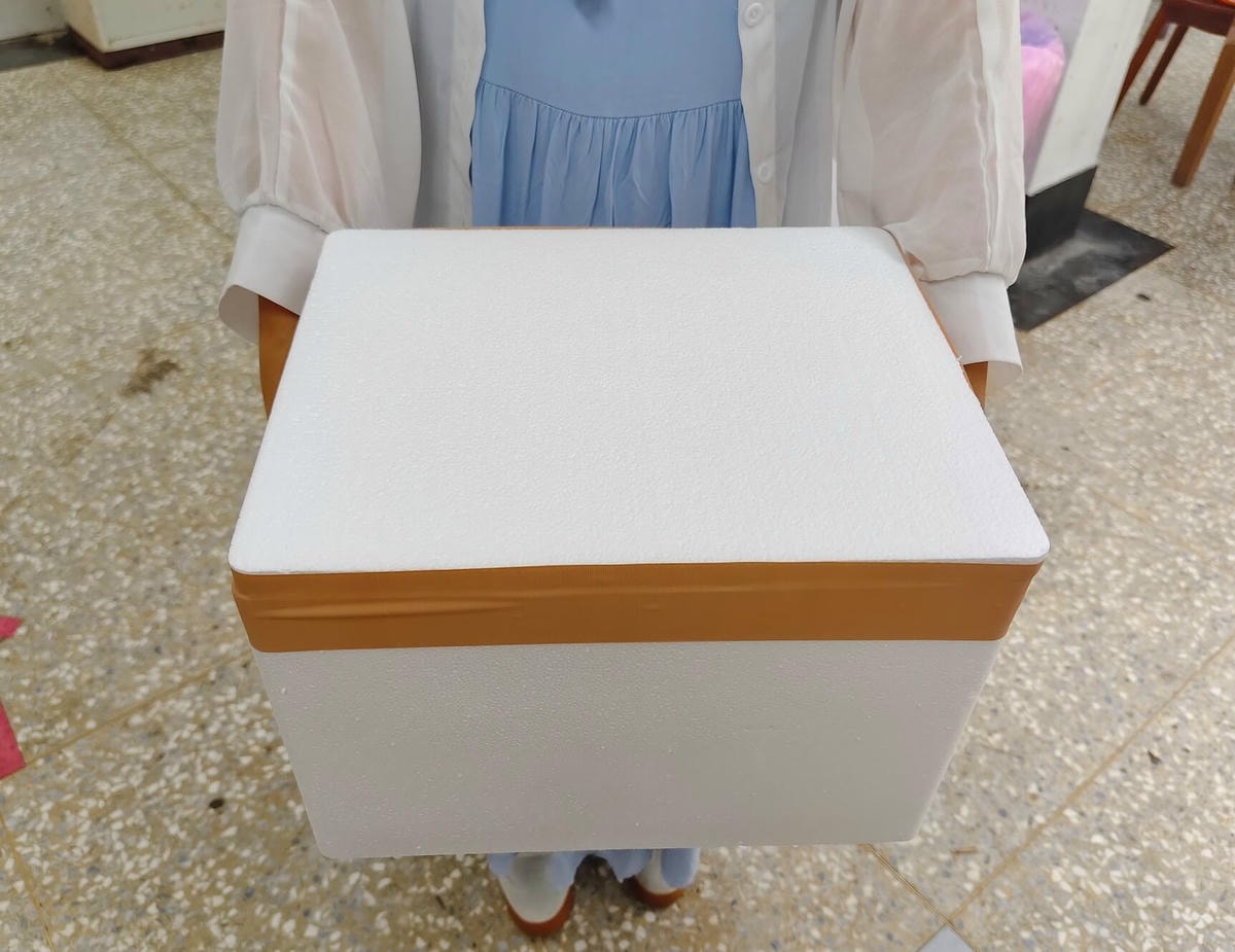 小美和朋友剛好在附近吃飯 , 順道來買 , 小美是第一次來沒有準備保冰袋 , 直接購買現場一個25元保麗龍箱 , 也不怕太快融化的危機