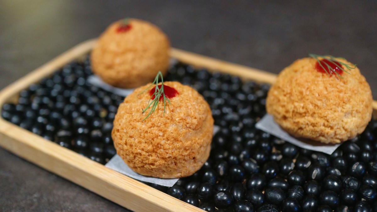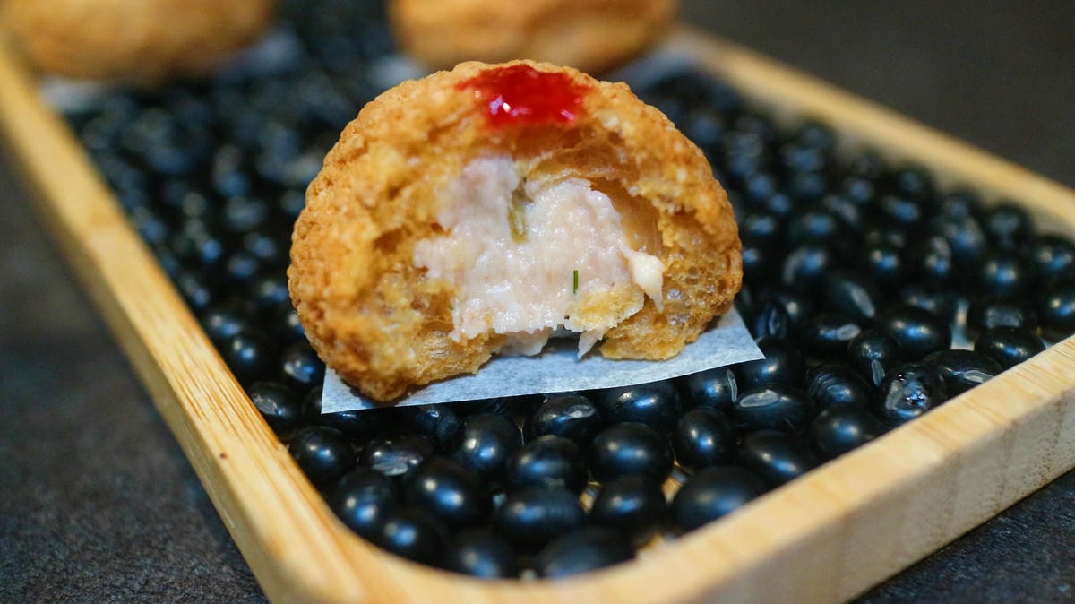 大口咬下迷你泡芙鮭魚泥的內餡鹹香鮮嫩 , 泡芙細膩滑順 , 爽口度十足口感更是讓人有驚呼感 , 非常特別推薦點起來