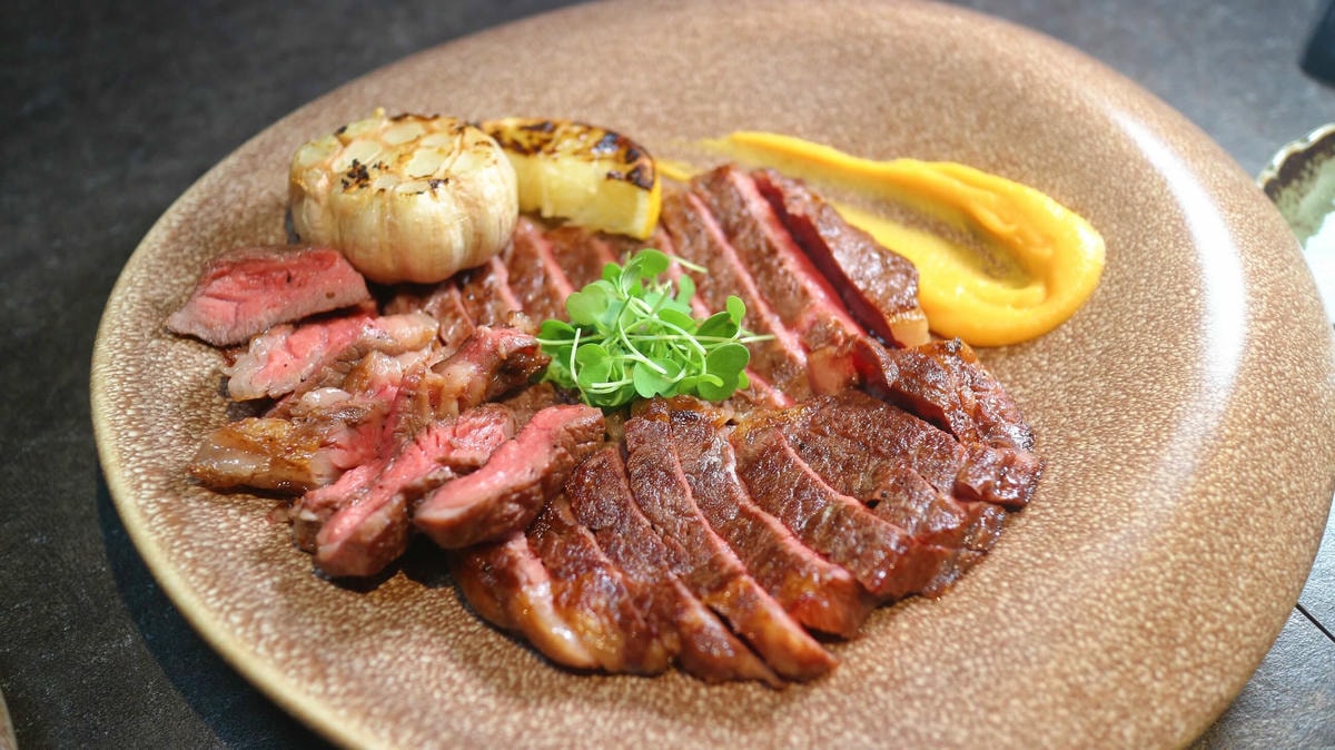 選用沙朗牛排後腰脊部位靠近腿部 , 油脂甜味馥郁 , 鮮嫩多汁 , 口感極佳沾點猶太鹽、地瓜泥、蒜多種吃法讓每一口都是新鮮感 , 各個都很有鮮甜無違和感 , 熟度洽好迷人 , 吃起來真的太滿足了