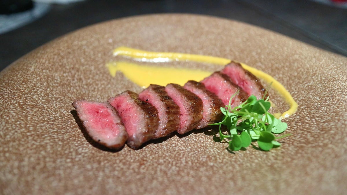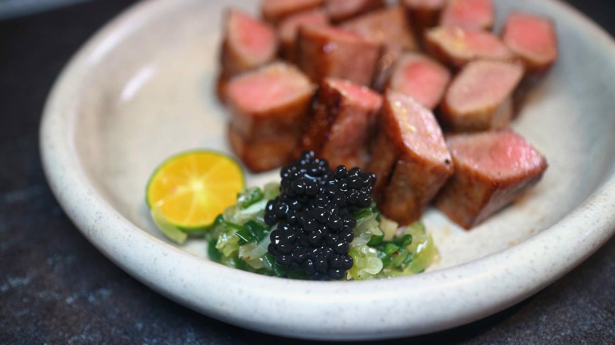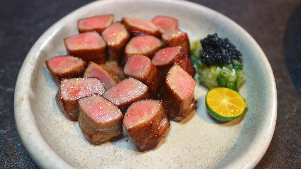 牛舌富有彈性又軟嫩多汁豐富的油花 , 烤過後的香氣 , 和魚子醬一同入口 , 那樣有豐富的層次感 , 但氣味濃郁 , 整體 CP 值也高