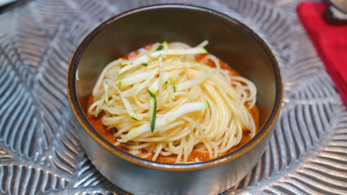 要不是老饕朋友推薦也不知道有這道王叔叔涼麵 , 將天使細麵拌入店家獨家特製芝麻醬 , 與特製辣醬 , 特製醬料與麵條交疊出迷人滋味 , 獨特的調配讓整碗麵香氣十足 , 口味上滑順帶點辣味香濃不膩口 , 吃來是越吃越順口 , 隱藏版菜單果然很無敵
