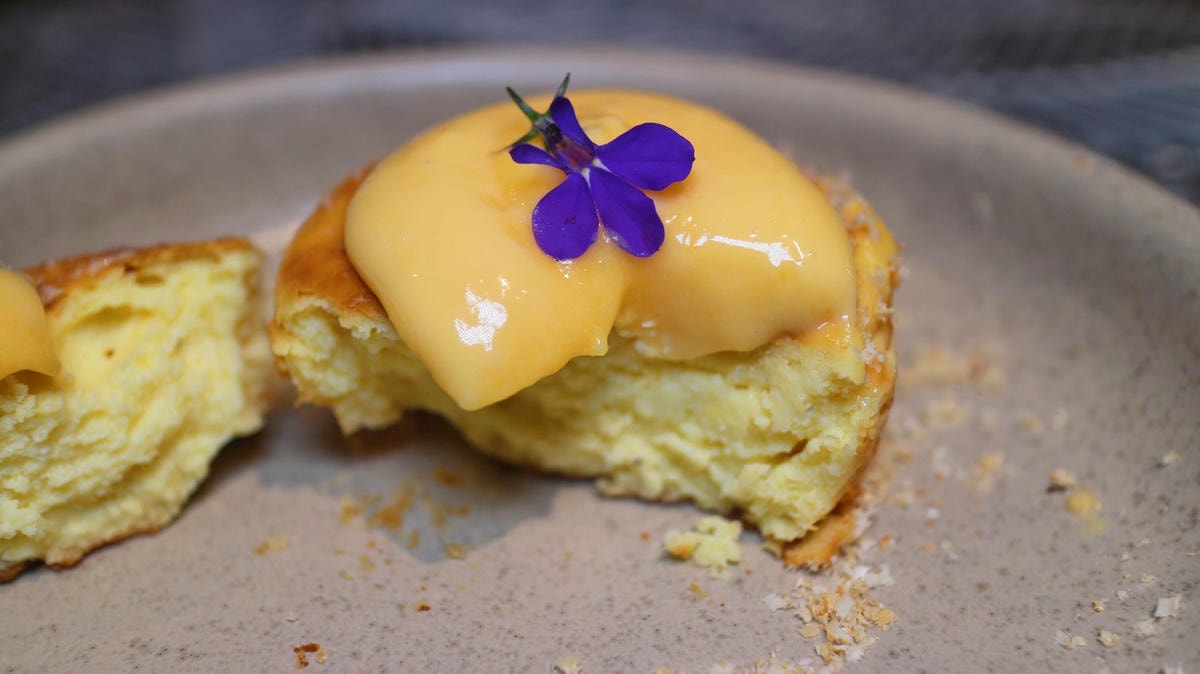 第一道冷前菜 , 一上桌就被他的可愛吸引 , 外層甜筒殼酥脆香甜 , 吃起來有餅乾口感