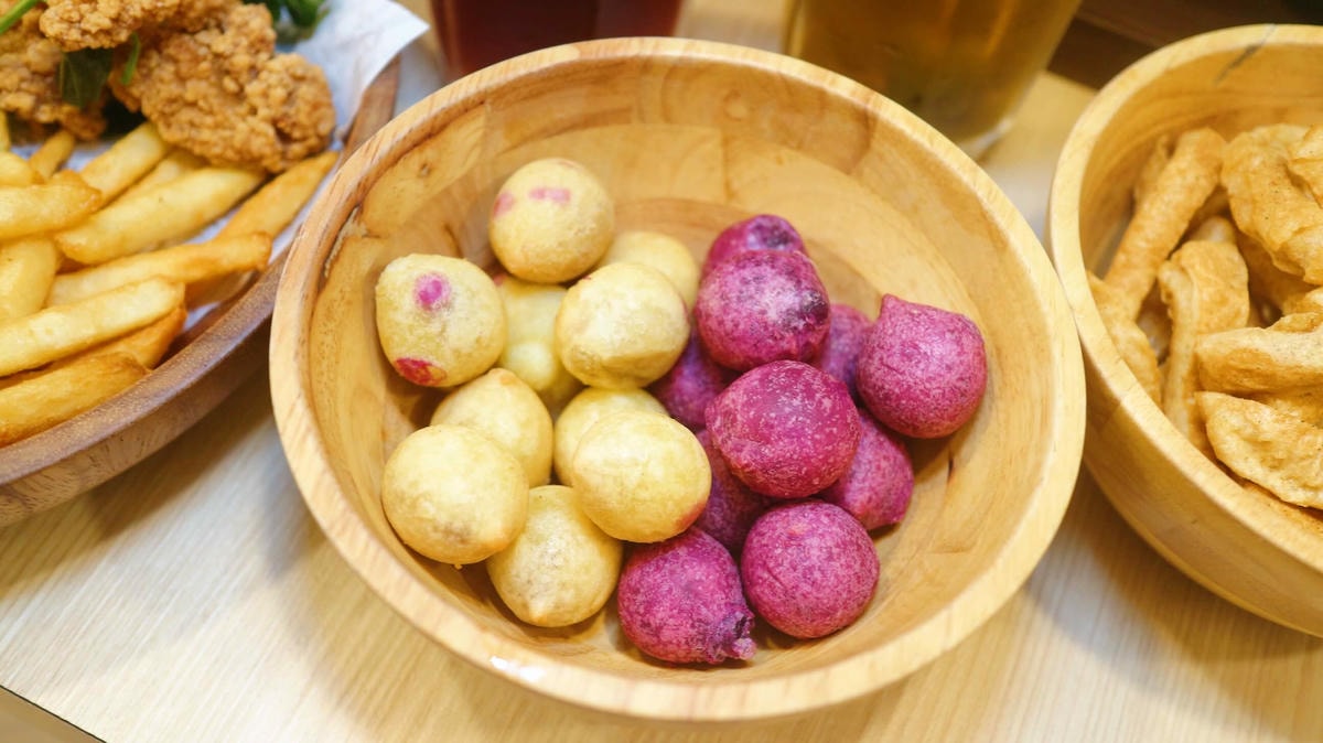 雙色地瓜球 二種外皮二種餡料 , 自然的甜度很迷人 , QQ彈彈香氣足夠