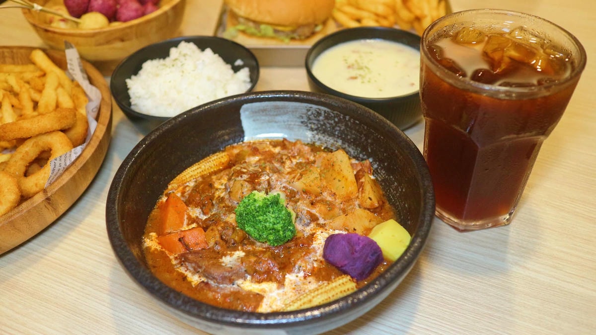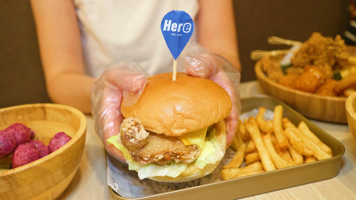 一手無法掌握的漢堡 , 一入口就是超滿足 , 雞腿排厚實又多汁 , 搭配起司以及加上豐富蔬菜等 , 漢堡還有附薯條吃起來好好過癮 , 一口一口層層堆疊 , 令人難以抵擋的美味 , 療癒美味