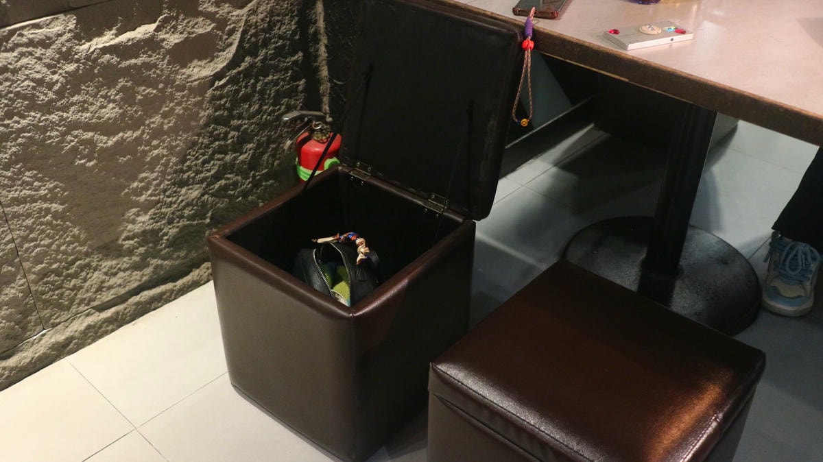 椅子翻開有置物籃很方便