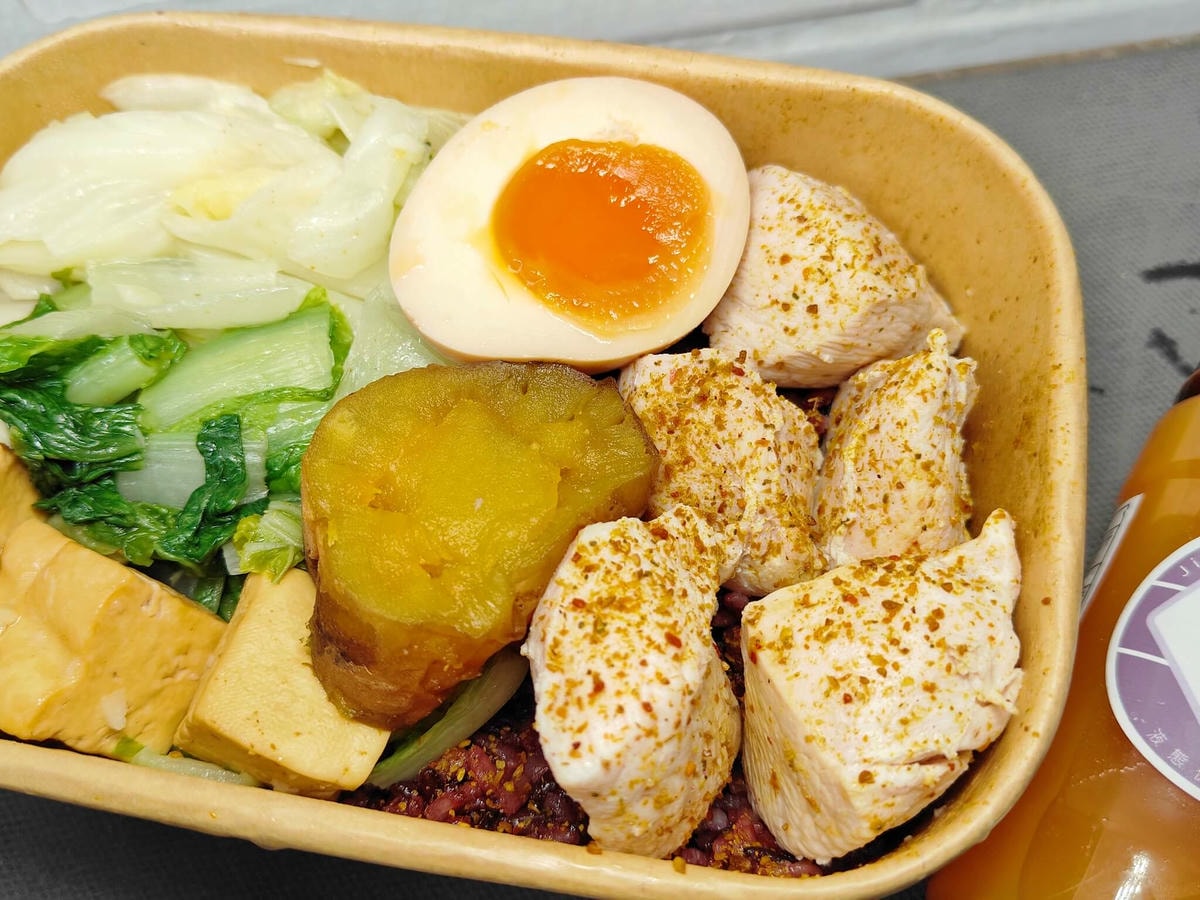 黑米飯+三樣時蔬+地瓜+溏煮蛋