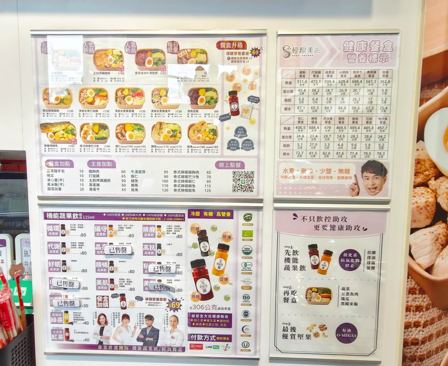 輕靚美菜單主打健康餐盒、蔬果飲、堅果包 , 菜單會不定期更(以官網公告為主) , 菜單上都有標示熱量對愛美的人真的是大福因