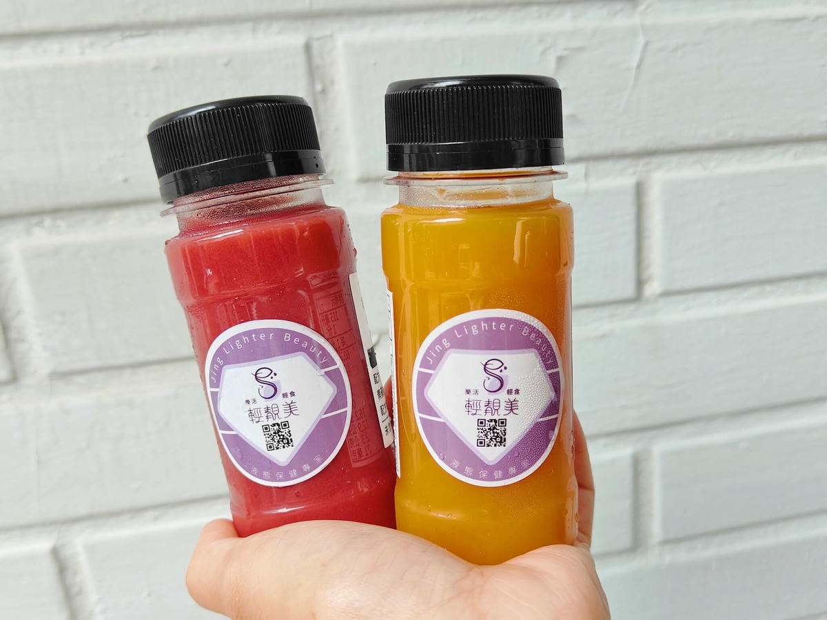 我們點的果汁 , 一瓶大概需要300公克的蔬果冷壓慢磨 , 甜度全來自蔬果本身 , 一餐下來飽足又很均衡 , 美肌蔬果汁酸甜好吃 , 攝守蔬果汁香醇濃郁