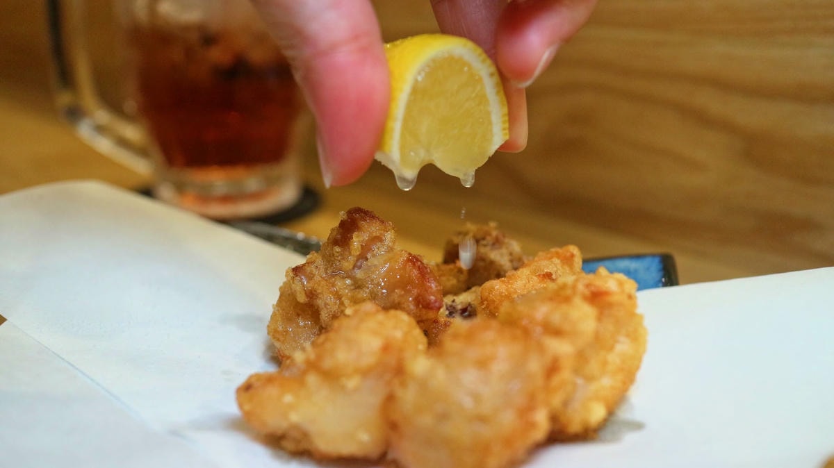 脆口香酥 , Q嫩多汁 , 鹹甘滋味在嘴裡縈繞不絕 , 淋上檸檬滋味更加清爽 , 相當涮嘴愈吃愈有味道