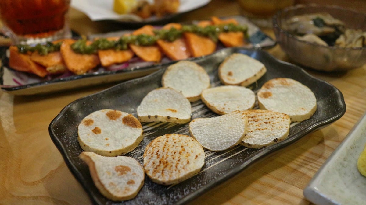 烤得非常香 , 吃起來脆脆的 , 喜歡吃烤山藥的朋友一定要來一份!