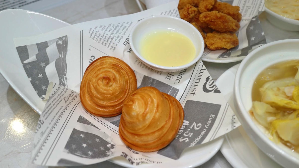 炸得金黃酥酥香紮實 , 帶點香甜的味道 , 滿足又能吃得非常飽