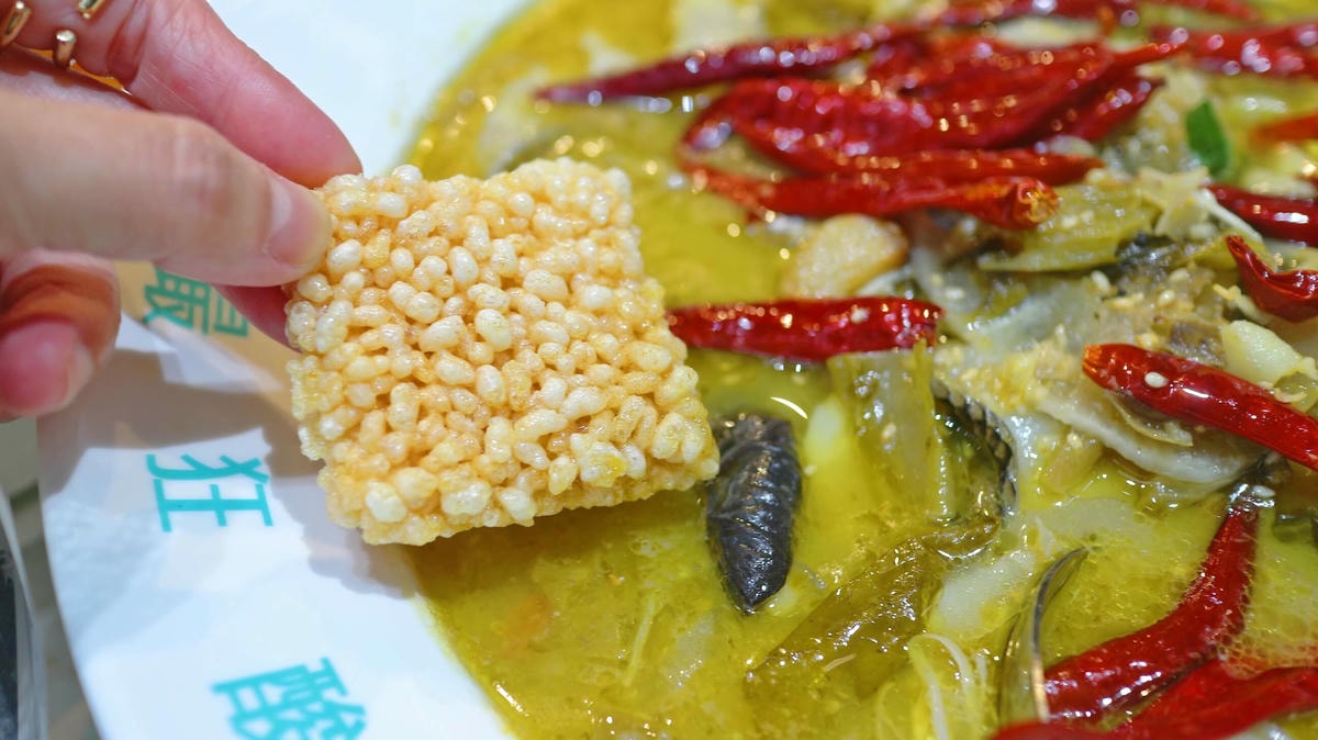 個人很推鍋巴~泡進去酸菜魚鍋 , 吸附湯汁爆好吃神唰嘴 , 脆甜爽口必點之一