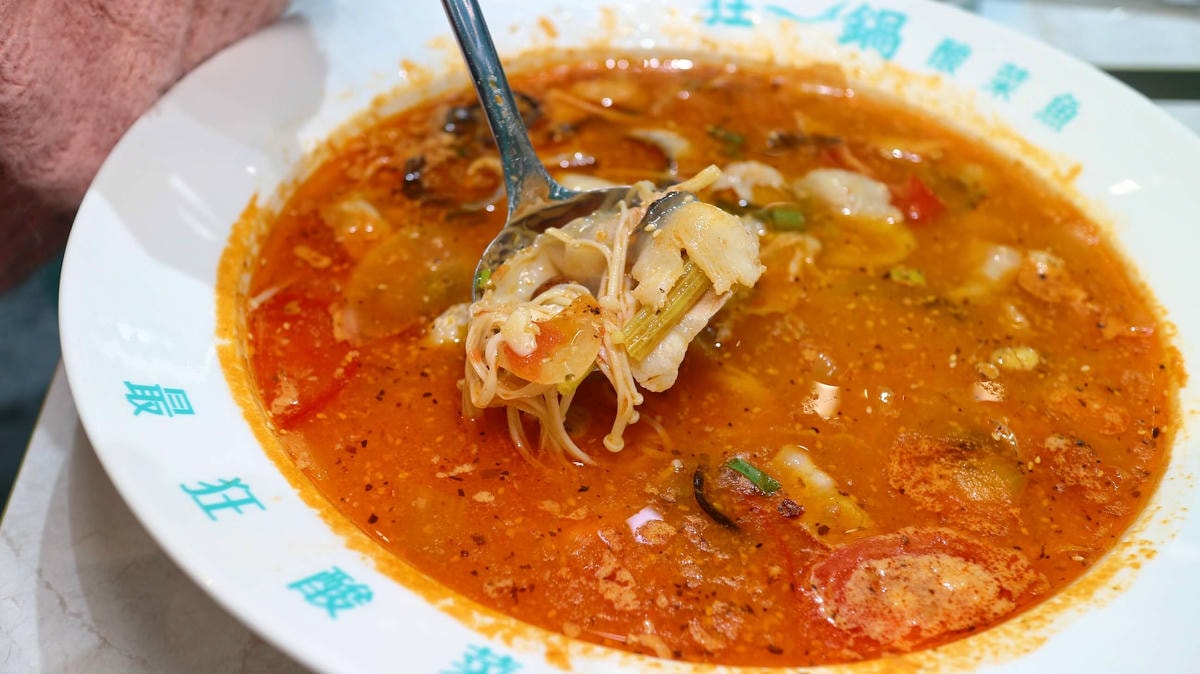 酸菜魚點特盛 , 蕃茄魚就點機車包 , 適合1~2人食用蠻剛好的 , 不吃辣的朋友可以選擇這份 , 蕃茄濃郁香甜交織在一起 , 酸甜清爽不油不膩