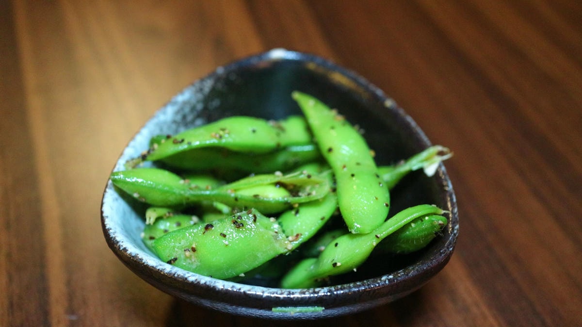 免費招牌的「黑胡椒毛豆」小菜 , 味道微辣感 , 鹹香好開胃 , 十分涮嘴好吃