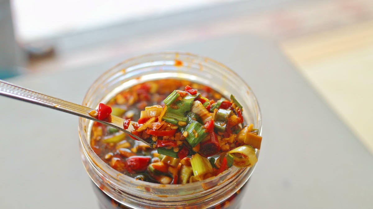 店家自製辣椒也是非常得我心 , 非常香非常古早味的那種 , 加什麼都好吃