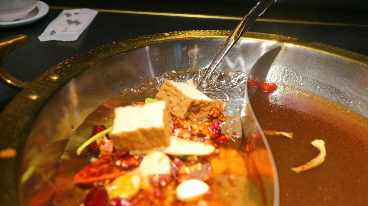 正宗成都麻辣鍋放了好幾塊牛油跟火鍋底料 , 火鍋底料都是自家製作 , 上桌後服務人員會幫忙加湯 , 成都火鍋的特色在於溫柔椒香、油不多、味不重 , 十分勾人味蕾 , 很特別的就是正宗成都麻辣鍋不加任何高湯 , 只加白水(白開水) , 老闆娘對於底料及食材有非常高的要求 , 也對正宗成都麻辣鍋有自信可以用白水煮 , 越煮鍋底越濃郁 , 最特別的煮到最後不會越煮越鹹的 , 涮什麼都好對味
