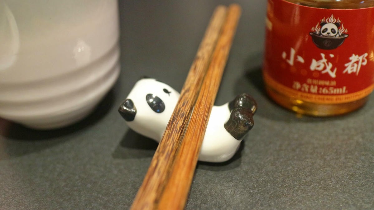 餐桌上筷架是非常可愛的小熊貓 , 看了好療癒