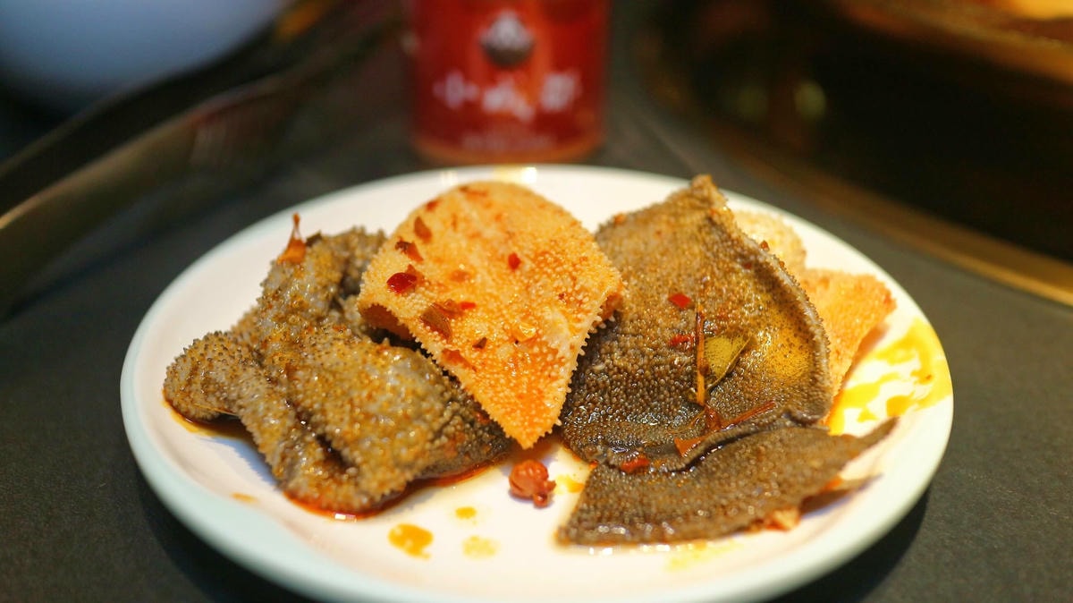 天梯,其實就是豬上顎連接牙齦的肉 , 口感脆脆爽口彈牙 , 涮麻辣辣爽好開胃 , 在黑白切有吃過 , 但已經很少看見了 , 真的是沒想到在麻辣火鍋店可以看見他