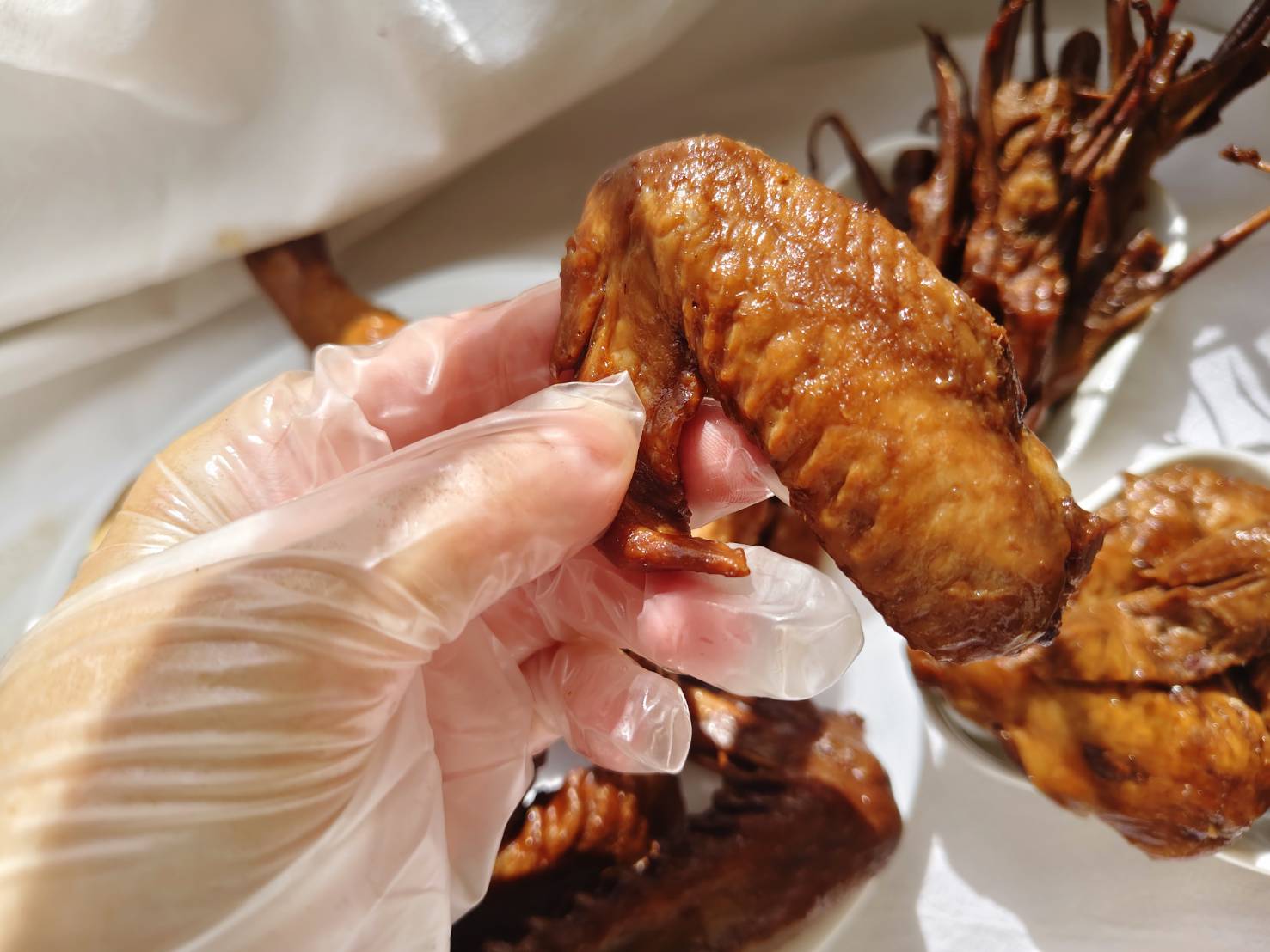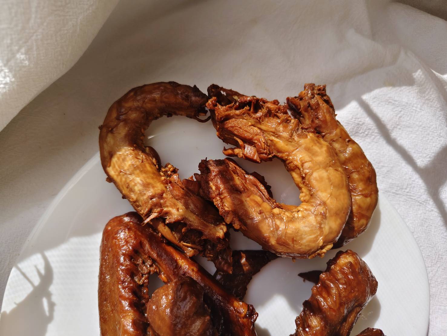 雞翅色澤油亮誘人滿滿滷汁香氣 , 吃到雞翅軟彈入味的外皮 , 鹹香可口入口膠質嫩口 , 不用太費力就可以骨肉分開 , 鹹香甘潤 , 忍不住就一口接著一口吃