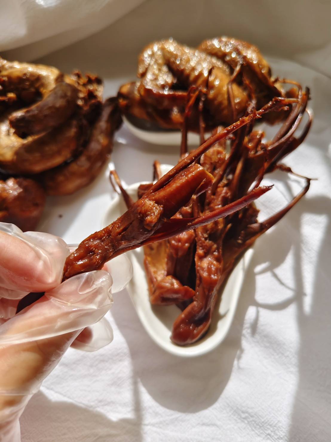 鴨舌 外表附著一層滷汁 , 濃郁甘甜 , 熱熱的吃濃郁好美味 , 放冰箱冰冰的吃 , 特別有口感 , 整雙鴨舌入味卻不死鹹 , 吃起來脆脆彈彈的 , 越啃越涮嘴 !