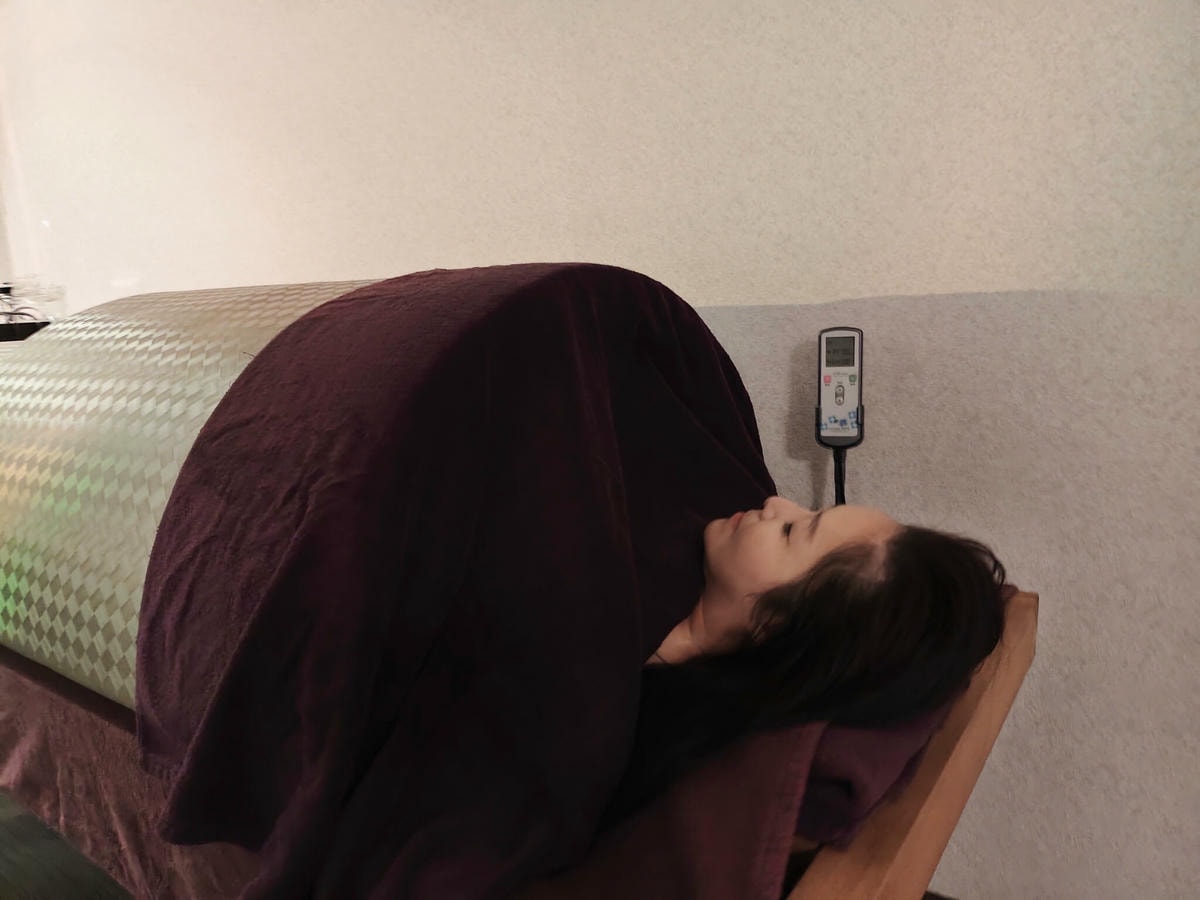 全套的身體按摩和體雕按摩結束後 , 此時就是來到稱躺著就能爆汗的岩盤浴 , 會有輕微的流汗 , 熱熱的冬天來一定會更舒服 , 整個過程讓人會想沉沉睡去 , 人都鬆了