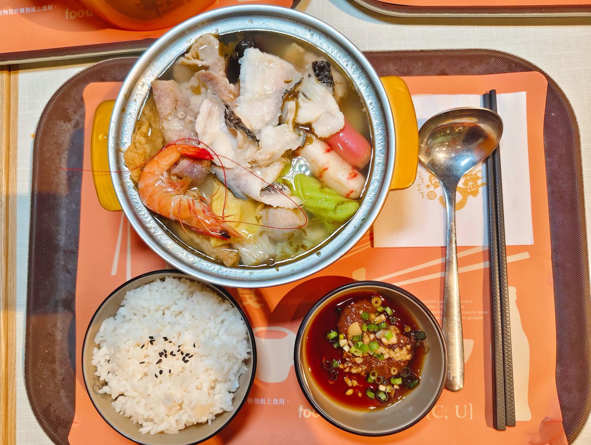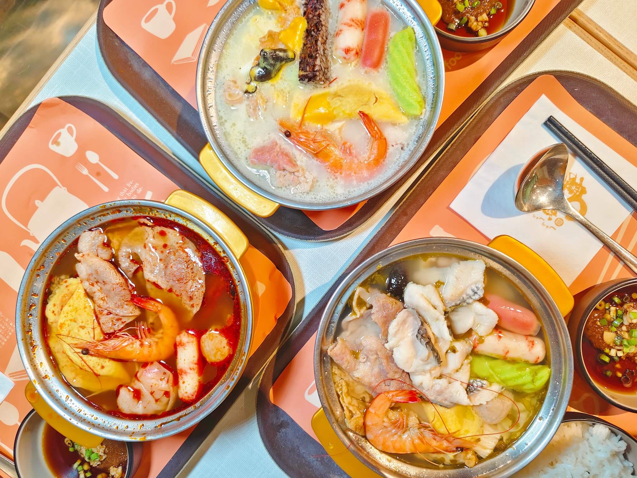 他們的麻辣出乎意料的順口 , 口味微辣是走台式路線 , 晚上吃也不會覺得太大負擔 , 牛奶個人挺推薦 , 搭配滿滿的料是鍋物首選 , 湯頭有馥郁奶香 , 吃起來料很夠味 , 牛奶中還有加起司 , 增添豐富層次 , 重慶酸菜魚鍋 , 酸酸辣辣很適合中餐吃 , 開胃而且簡直是白飯殺手啊!三份鍋物料都給的很多 , 誠意滿滿給個讚!