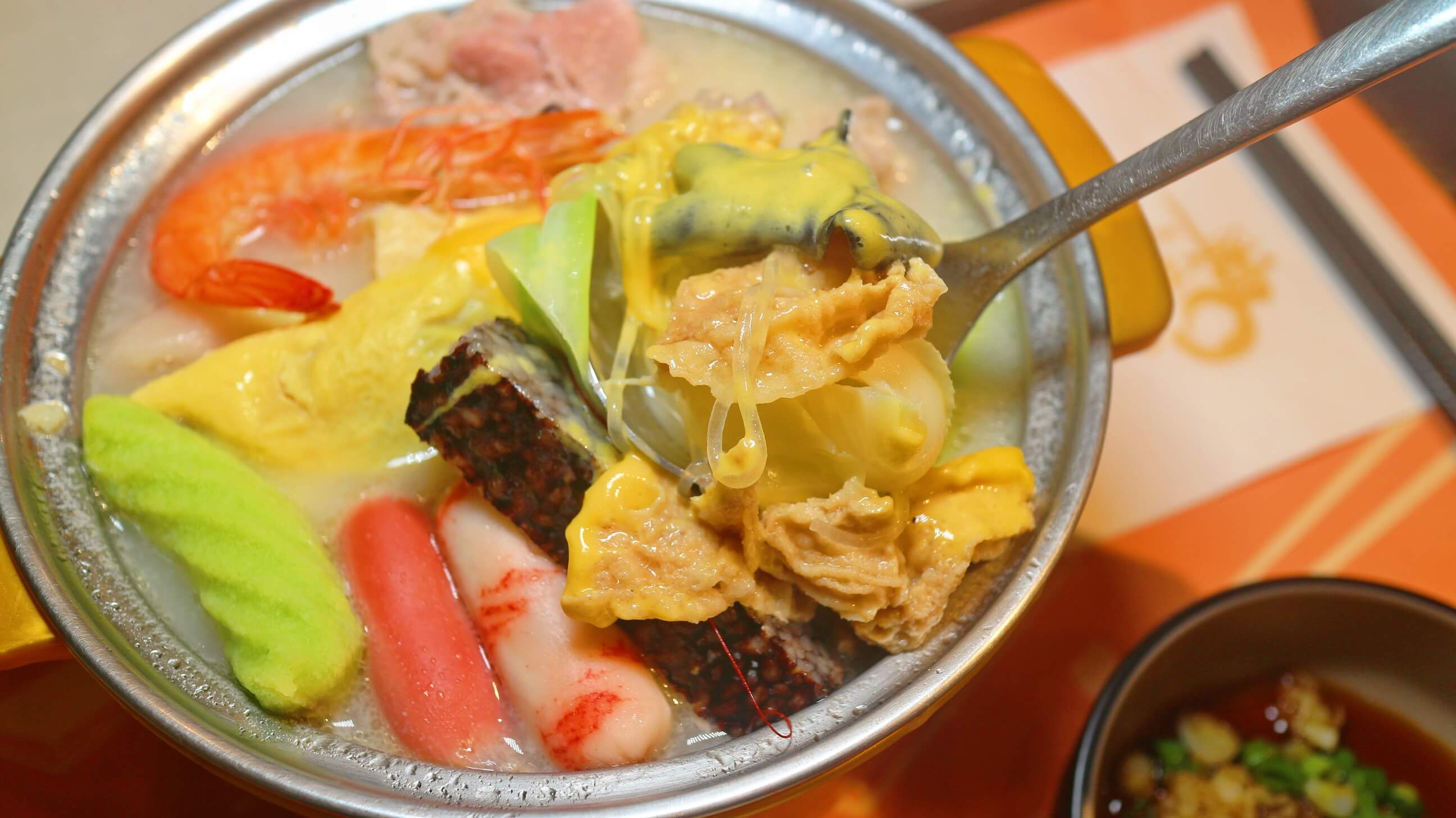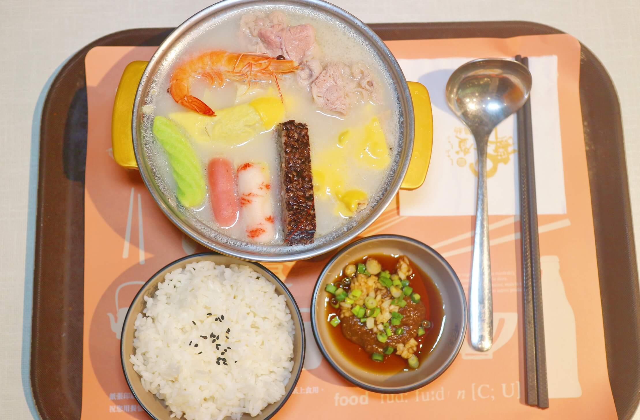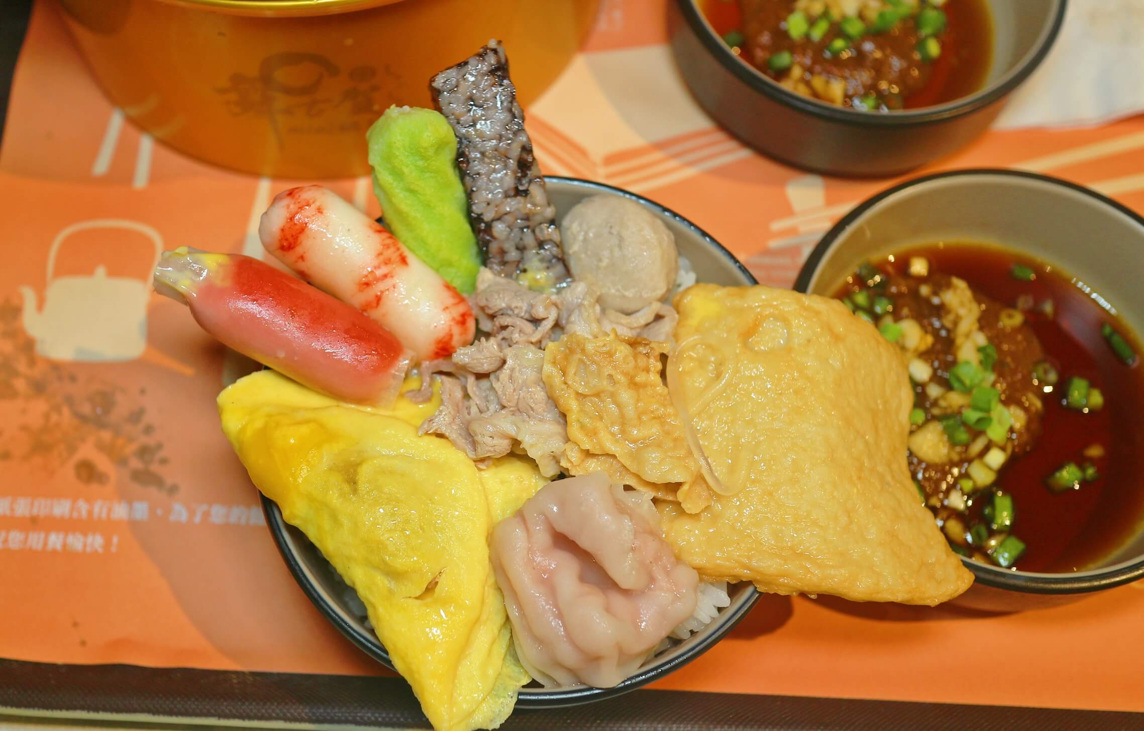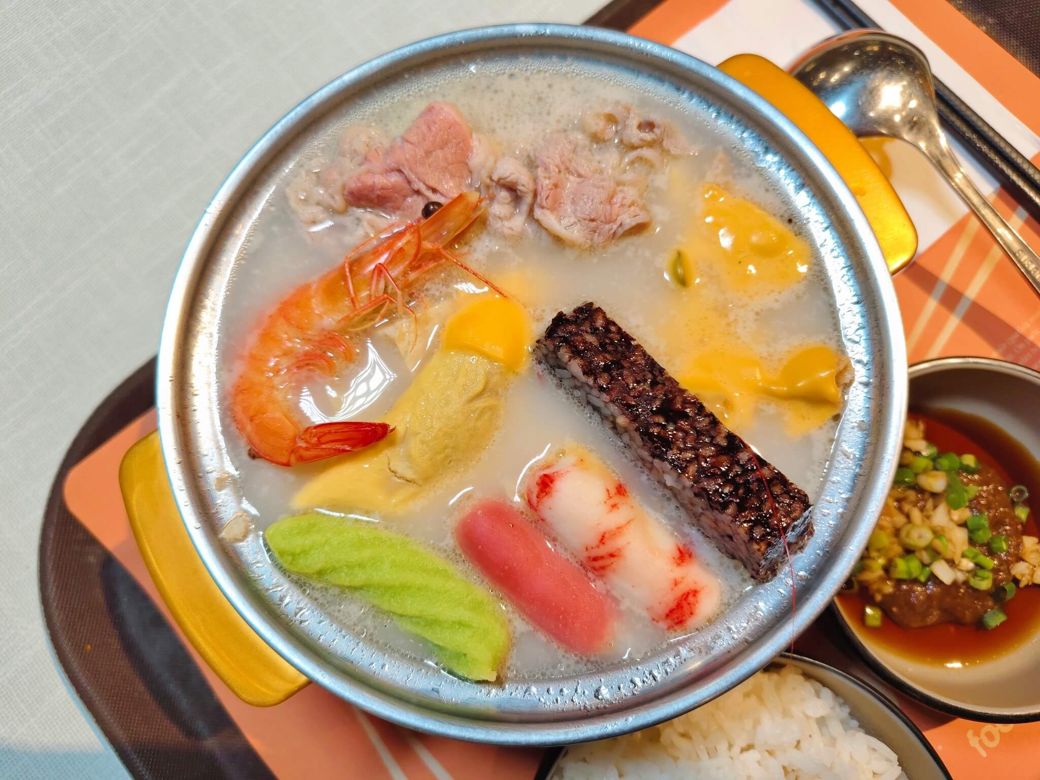 整碗滿滿的料 , 肉肉 , 豆皮 , 米血 , 蛋餃 , 甜不辣 , 蝦子和各式的火鍋組合料也算豐富~愛肉多的朋友也可以選擇雙倍肉量