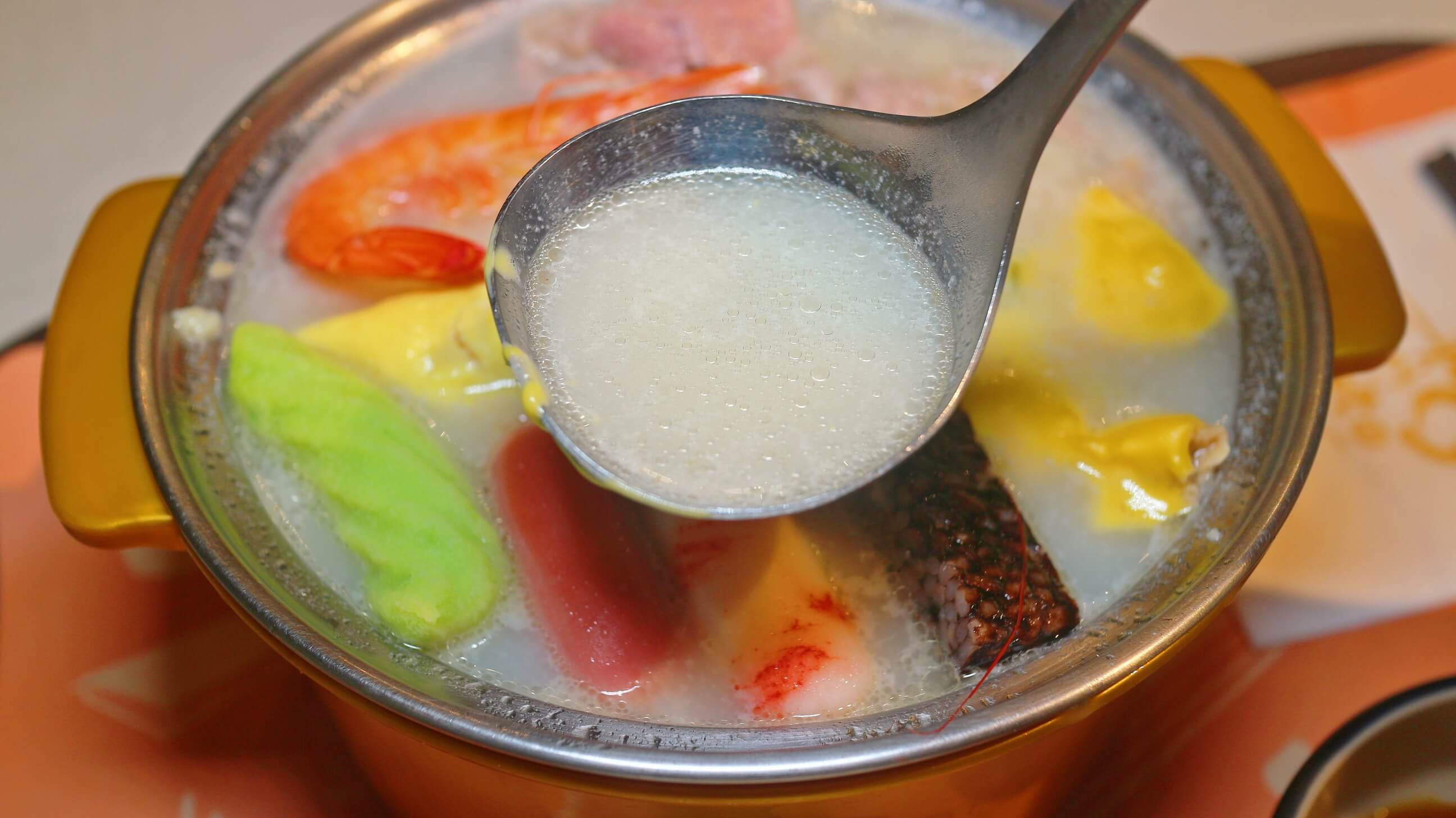 牛奶鍋湯底直接加上一片濃郁起司 , 每一口都吃得到涮出來的奶香味道 , 濃郁的起司也跟牛奶絕配 , 濃香好好喝啊